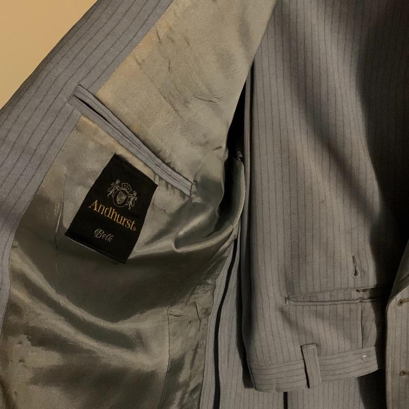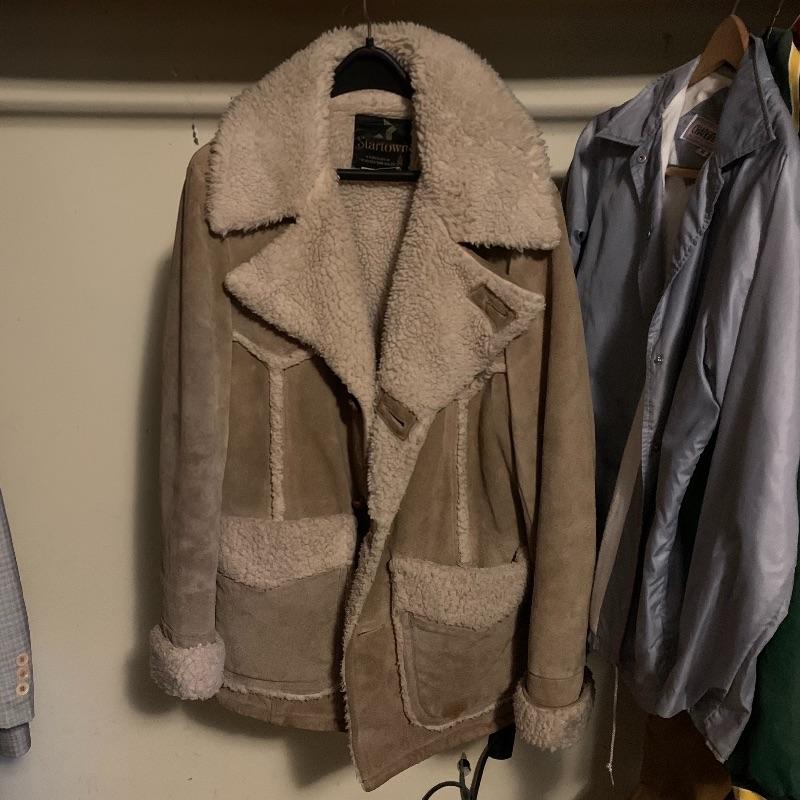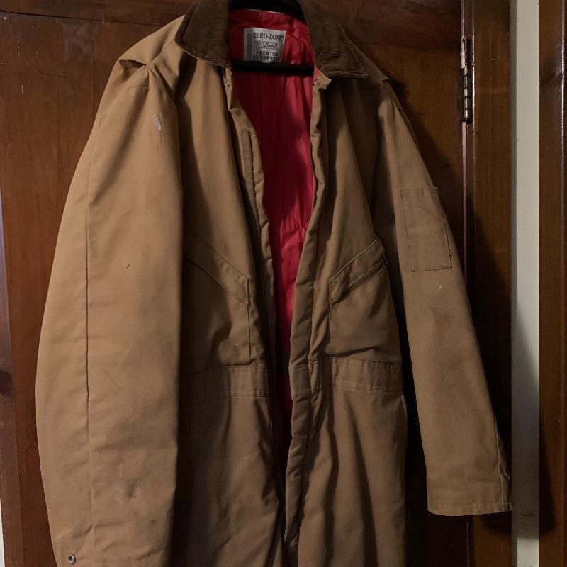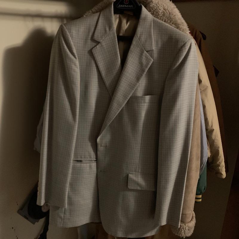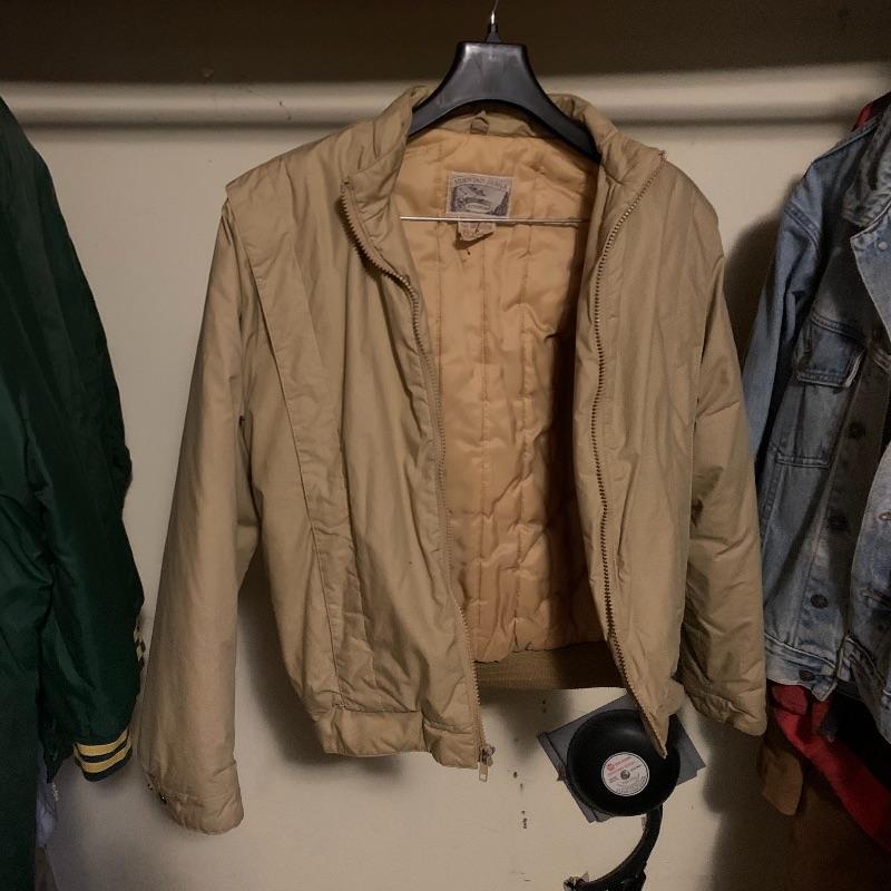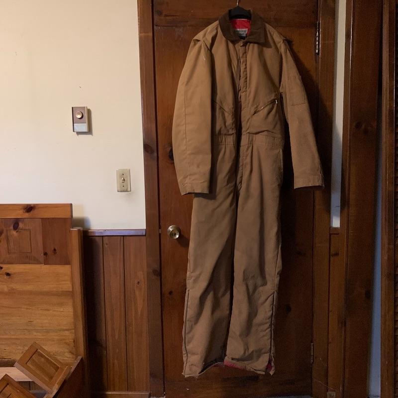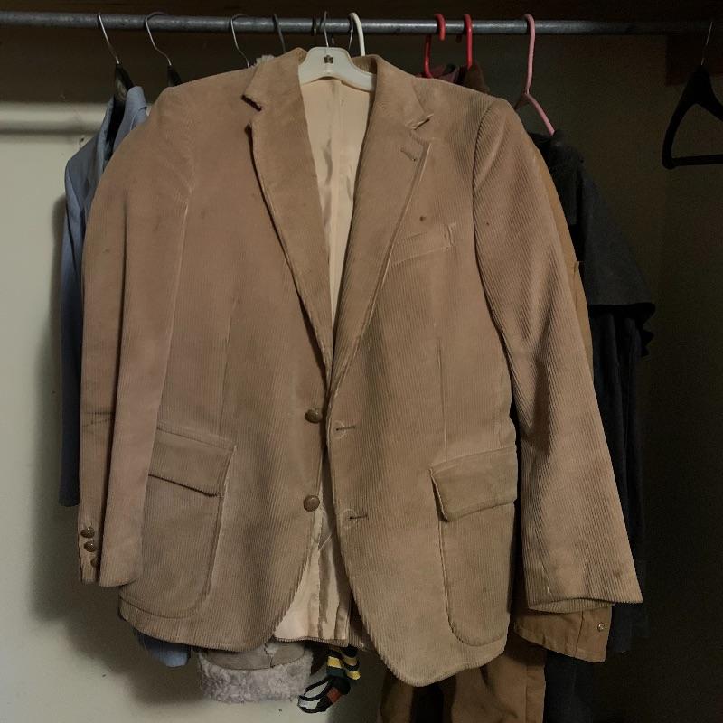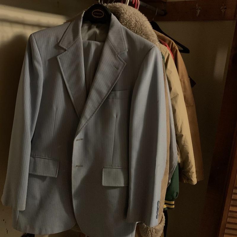 This lot includes various men’s jackets and more. There are a few suit jackets (the blue one has a matching pair of pants) and light jackets to wear in the spring or fall. There’s a very thick and warm Startown genuine leather jacket with wooden buttons, as well as a heavy canvas Kanadu Trader’s jacket from Australia with metal snaps. The Australian jacket has a bit of a musty smell, but comes with care instructions for cleaning. Also included is a thick and warm pair of canvas coveralls with long sleeves and long pants. It zips up the front and has zips on the legs. There is also a fun collection of vintage neckties, including a set of Snapper & Monsieur Cravatieur snap-on ties, one belt, and two white handkerchiefs monogrammed with an “H”. Local pickup only.
