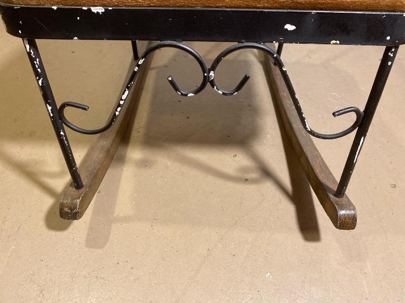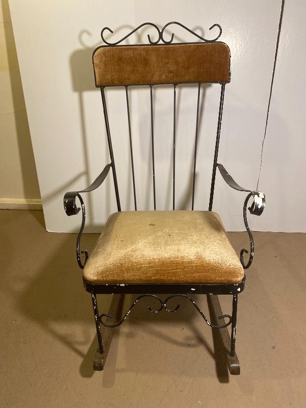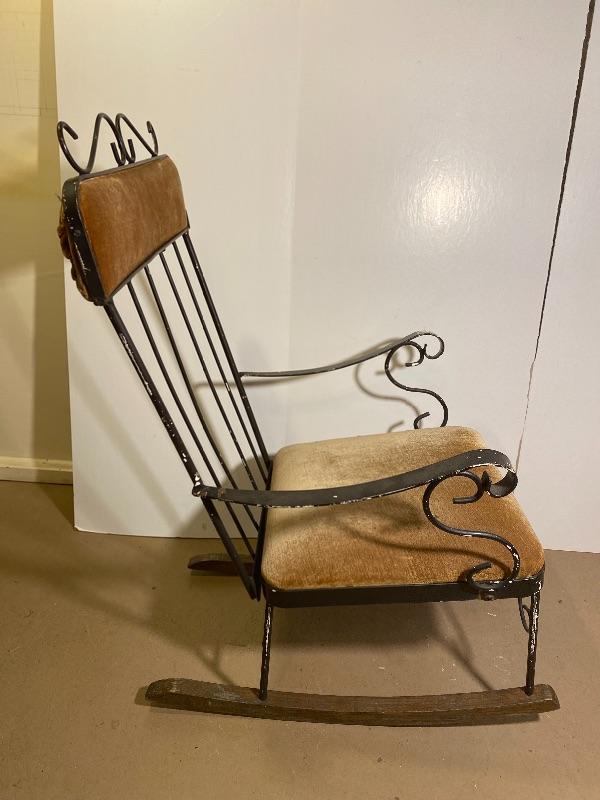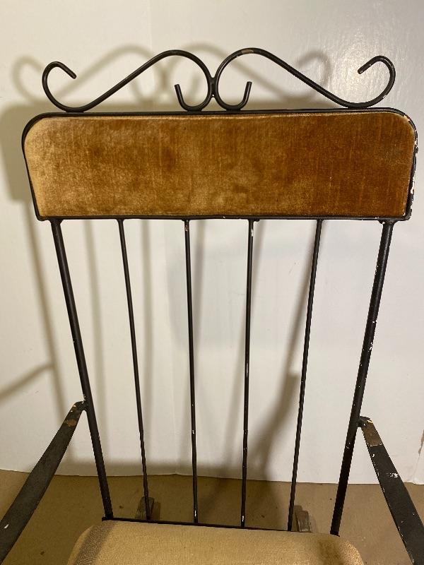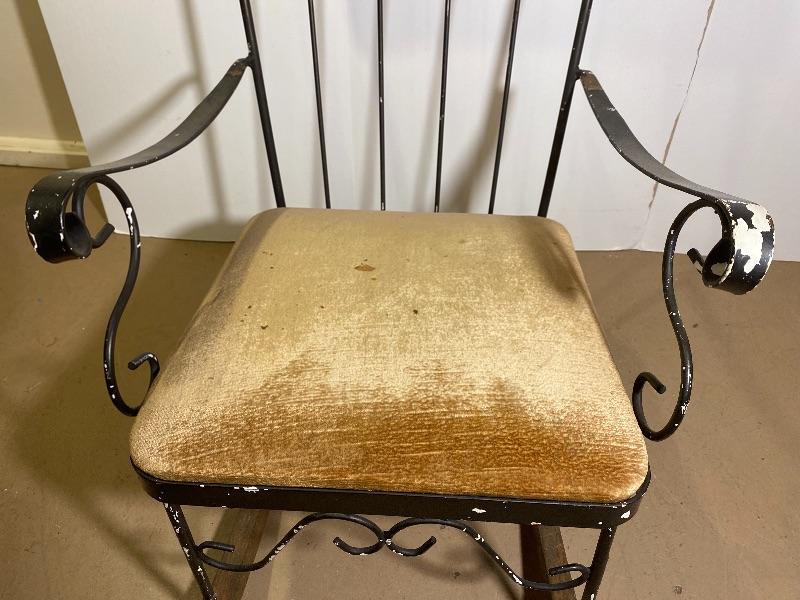 Lot# 131 Old Child’s Upholstered Wrought Iron and Wood Rocker