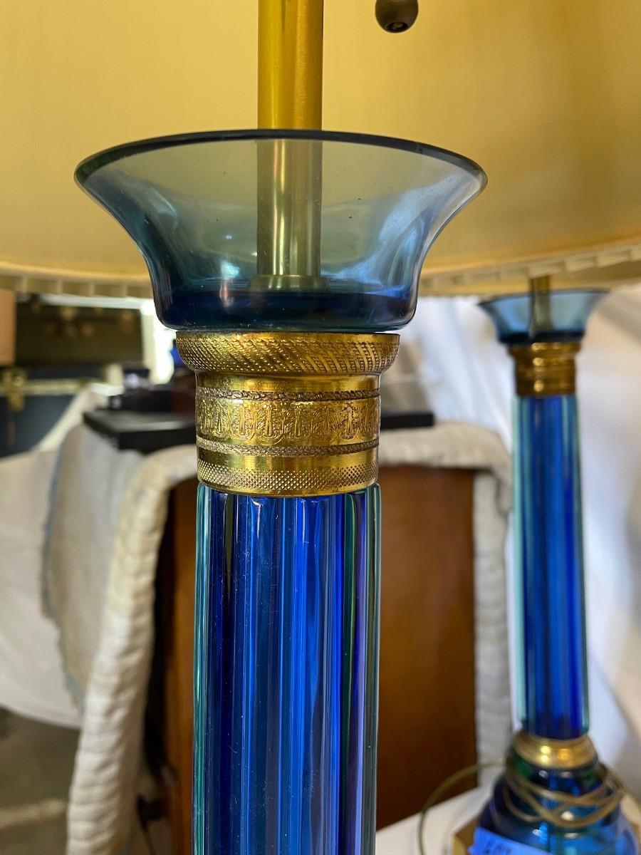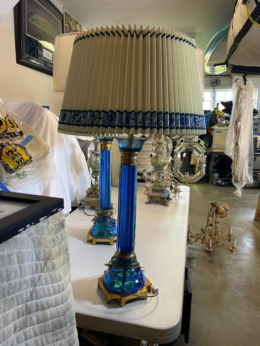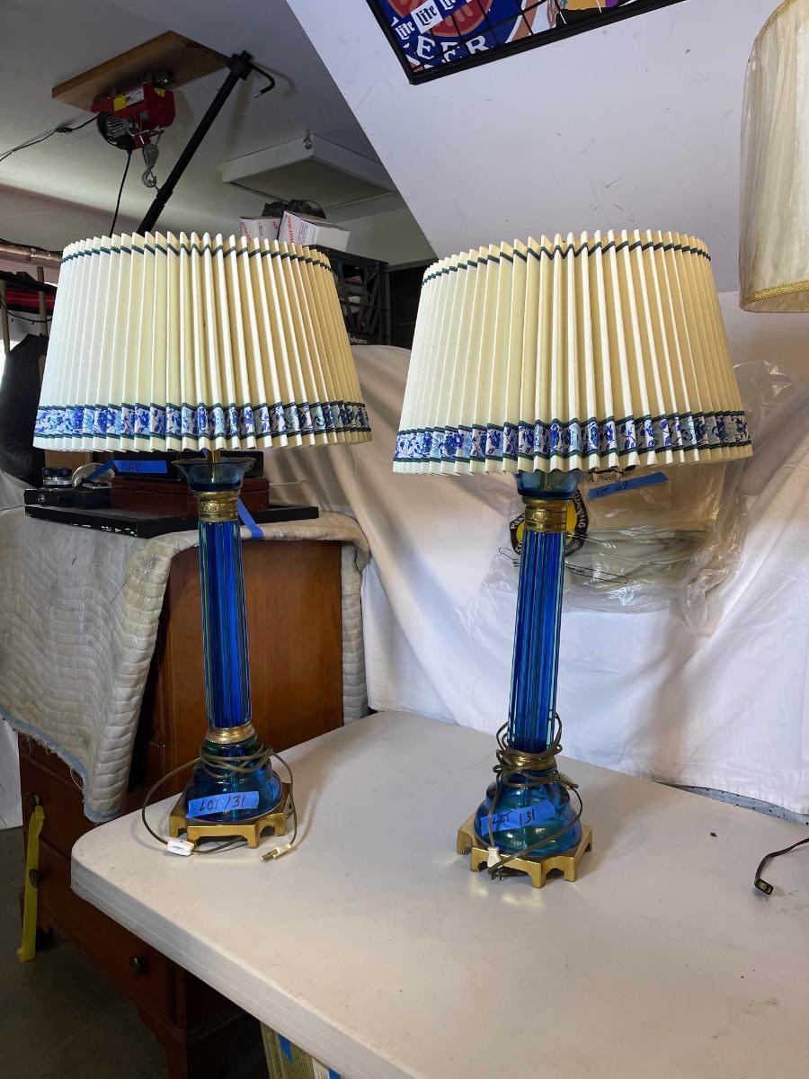 Lot 131 - Pair of Blue Glass Tall lamps!