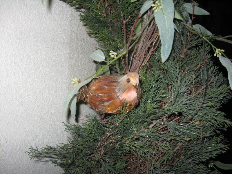 Nice Pedestal Planter with Beautiful Faux Juniper decoration and feather bird 60” tall Foliage 12”wide.