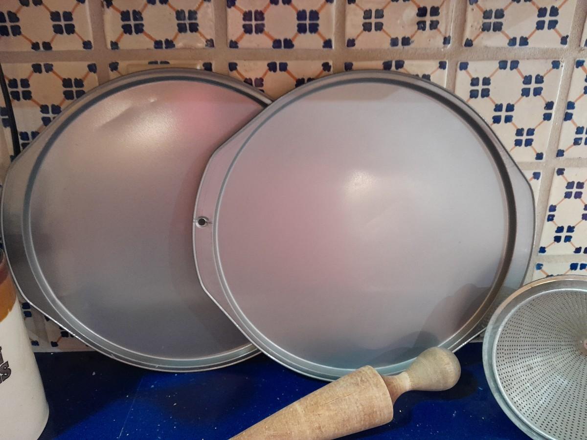 LOT 131 PIZZA PANS, COOKIE SHEET, STRAINER AND MORE