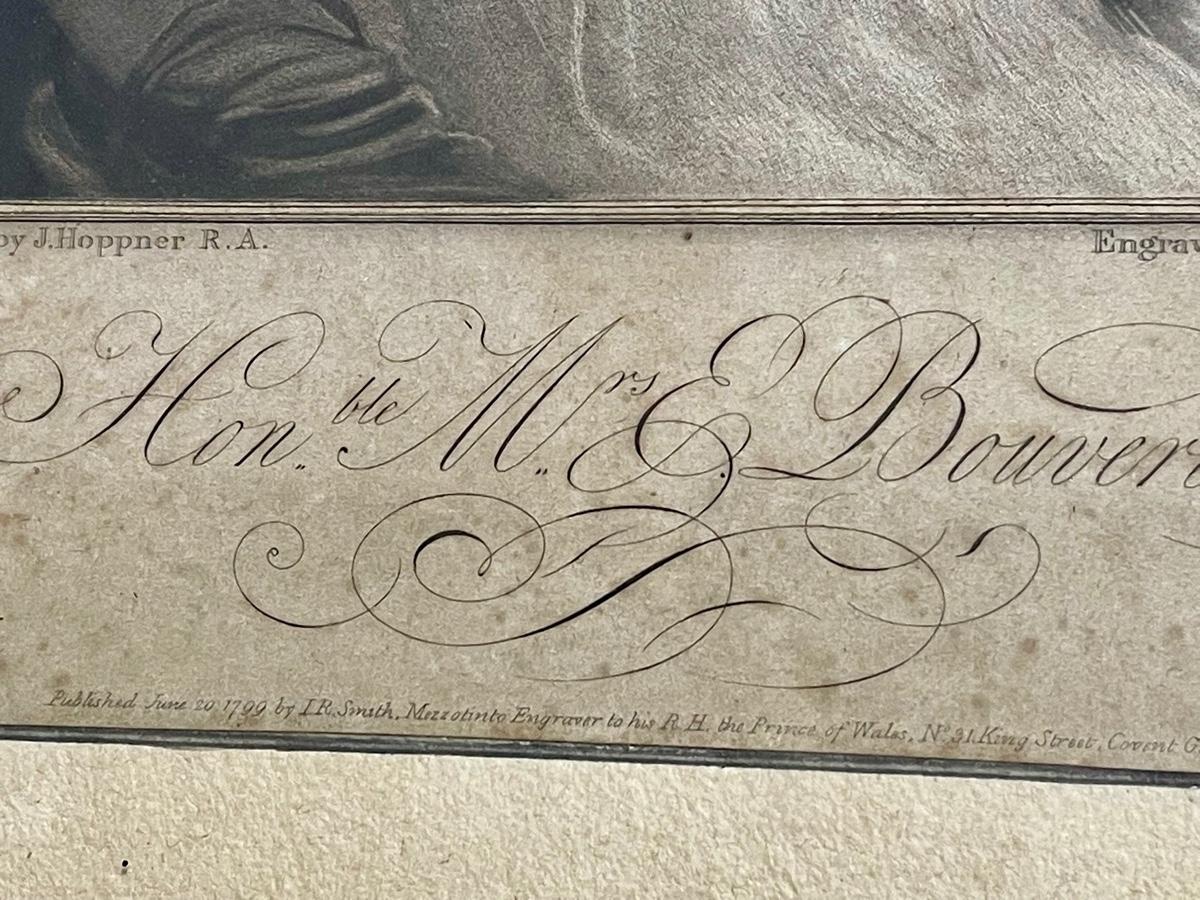 LOT 131 Portrait Of The Honorable Mrs. Bouverie Engraved By I.R Smith. This engraving is based on the original painting by John Hoppner. This item is part of the David-Pleydell-Bouverie Estate at Bouverie Ranch in Glen Ellen. This item can be viewed at our Green + Cate Showroom in Sebastopol from July 15th - July 18th between the hours of 9am-5pm. For the benefit of the Bouverie Preserve of Audubon Canyon Ranch.