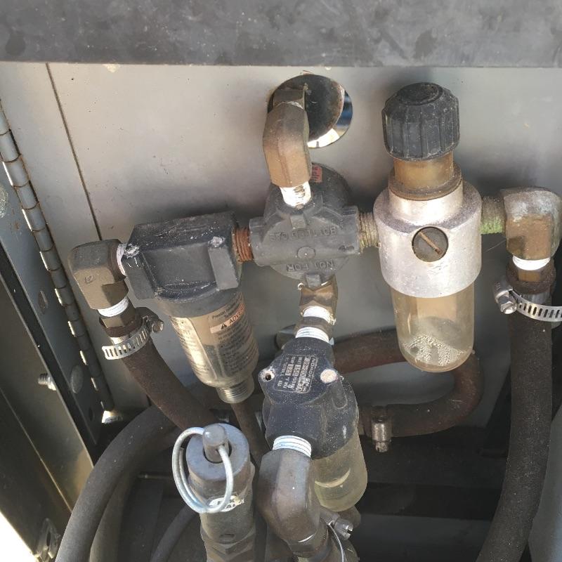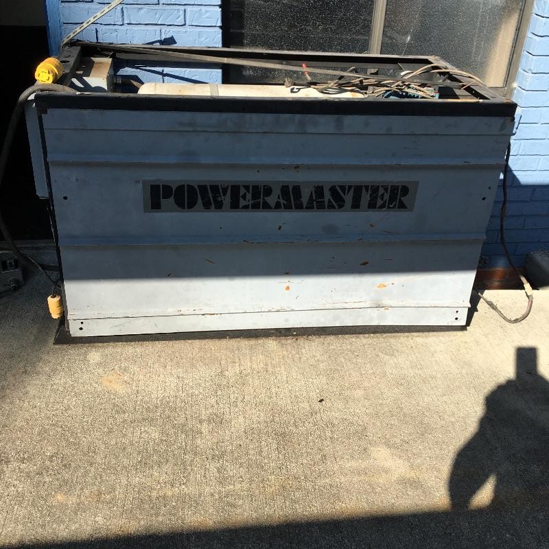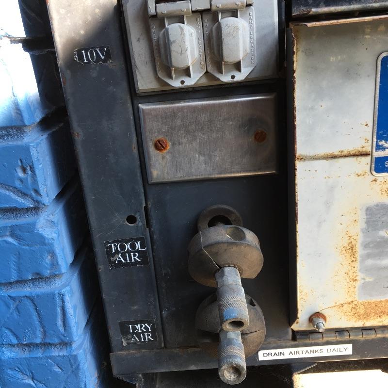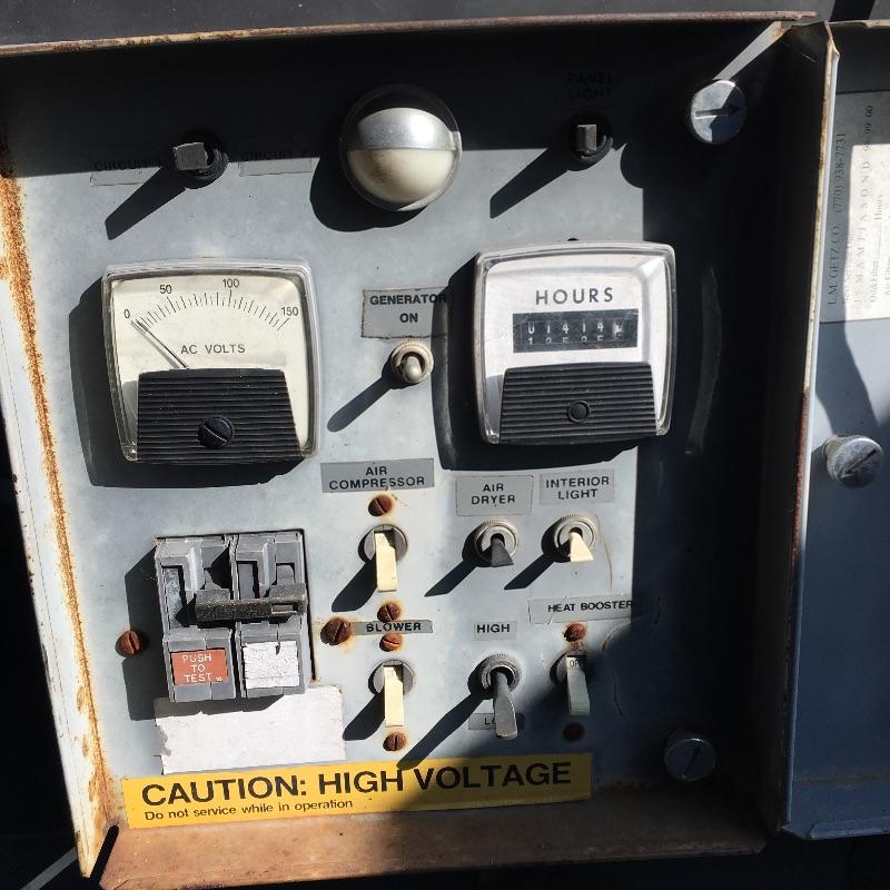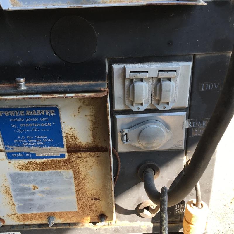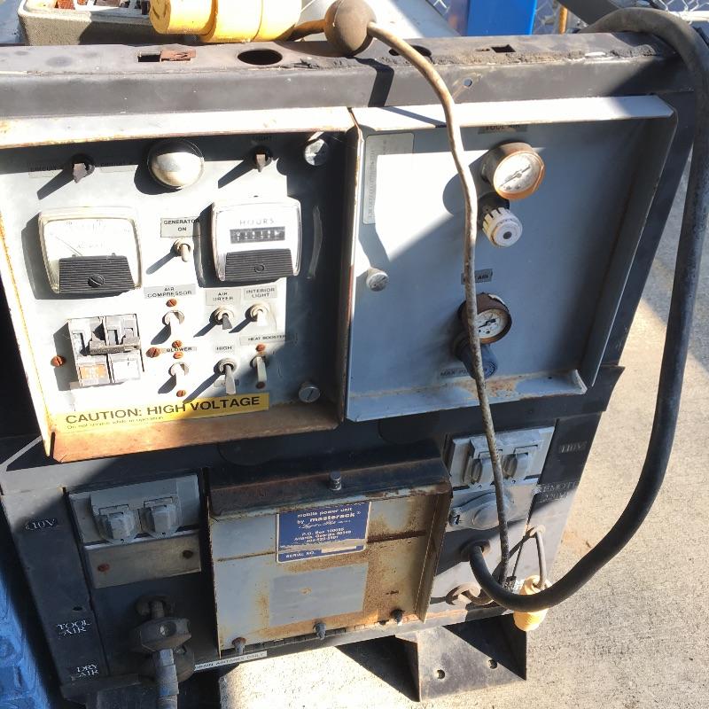 Powermaster power unit air compressor. Hour meter shows 1414 hours.