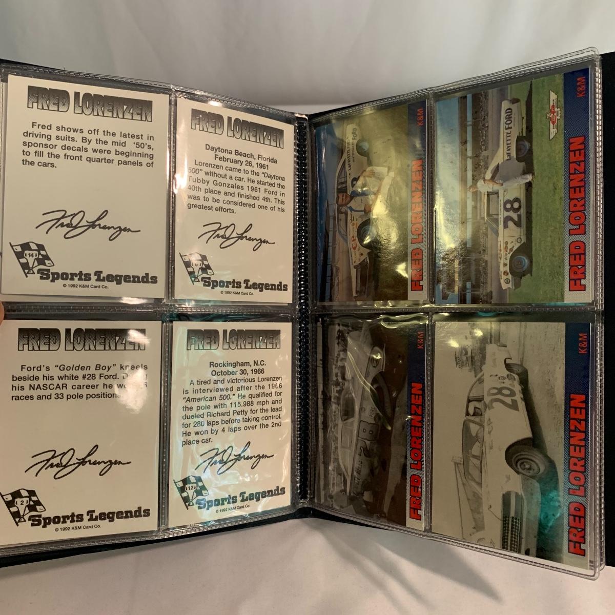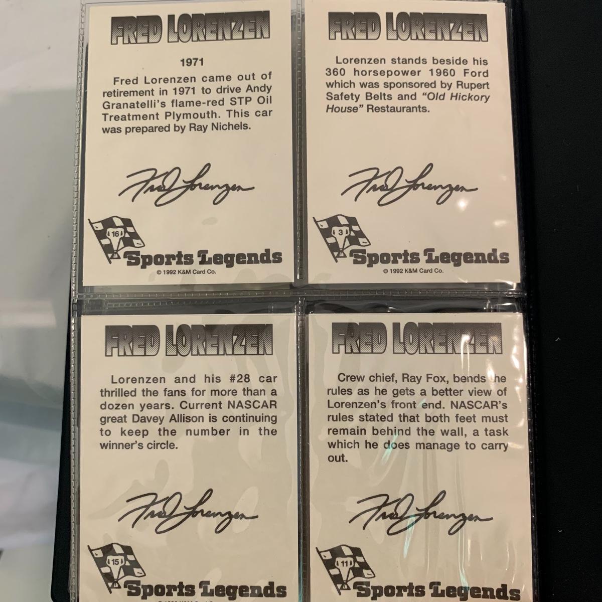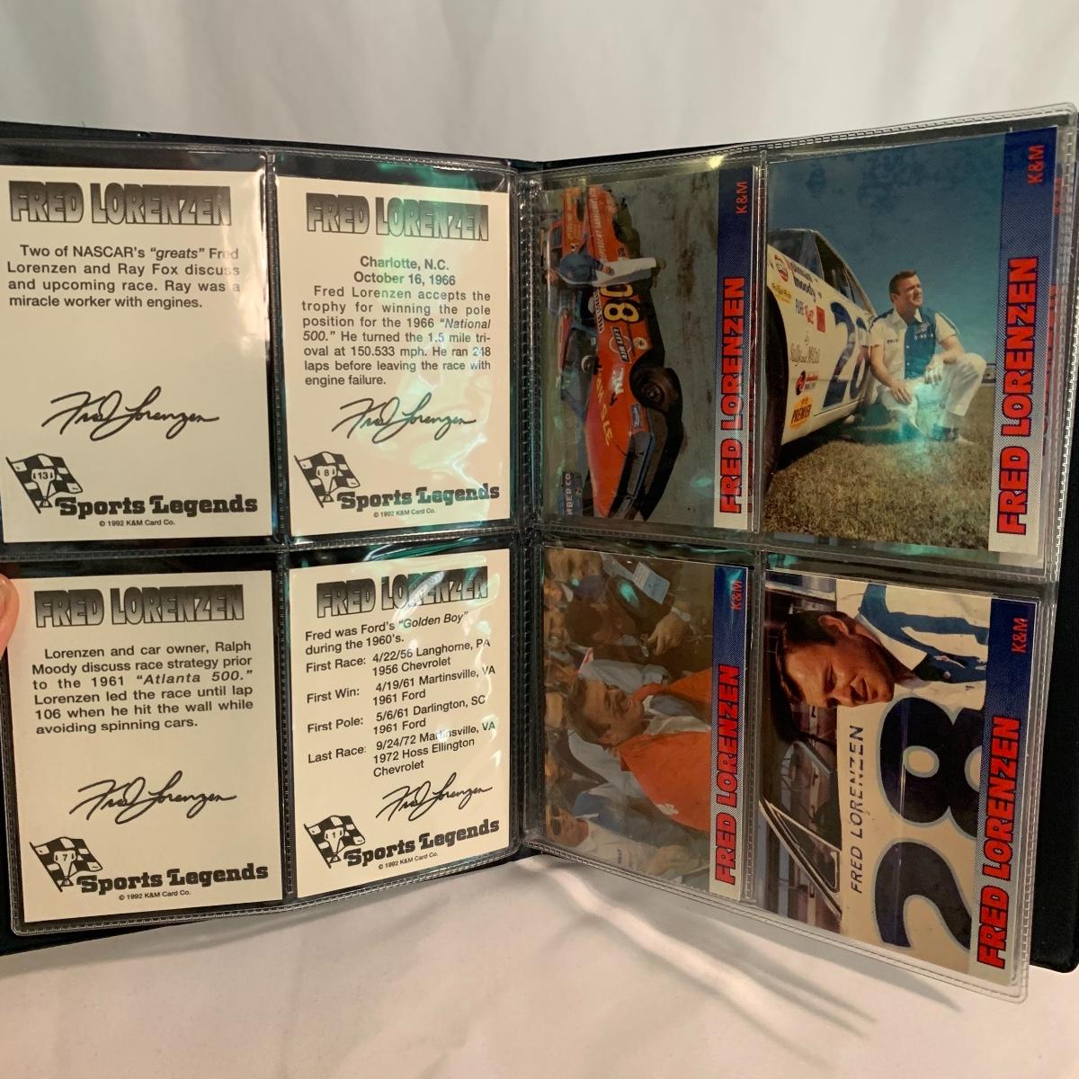 If you are a racing fan this lot is for you! Included are two model race cars in display boxes, one standalone car, Fred Lorenzen trading cards, and a set of vintage radio headphones. There are 16 Fred Lorenzen trading cards that come in a nice protective booklet. The headphones are vintage Winston Racing AM/FM radio headphones, model HP9000. They are battery operated and very cool! Unable to test since battery is dead. Shipping available.