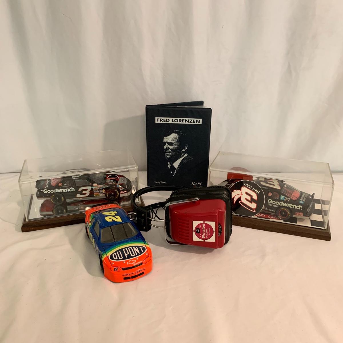 Lot 131 - Earnhardt, Gordon & Lorenzen Race Cars and Trading Cards & Vintage Radio Headphones