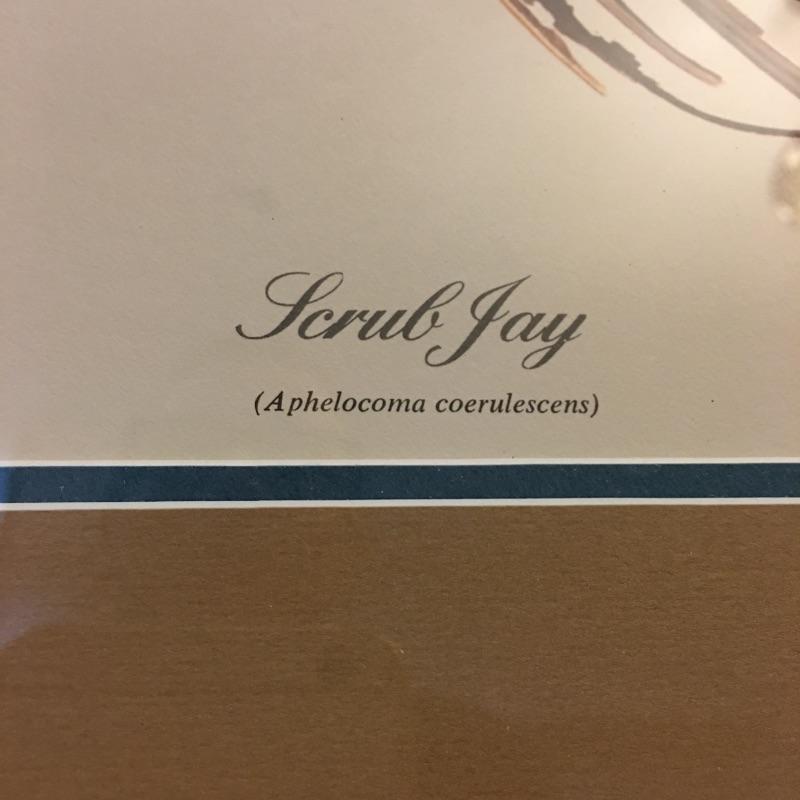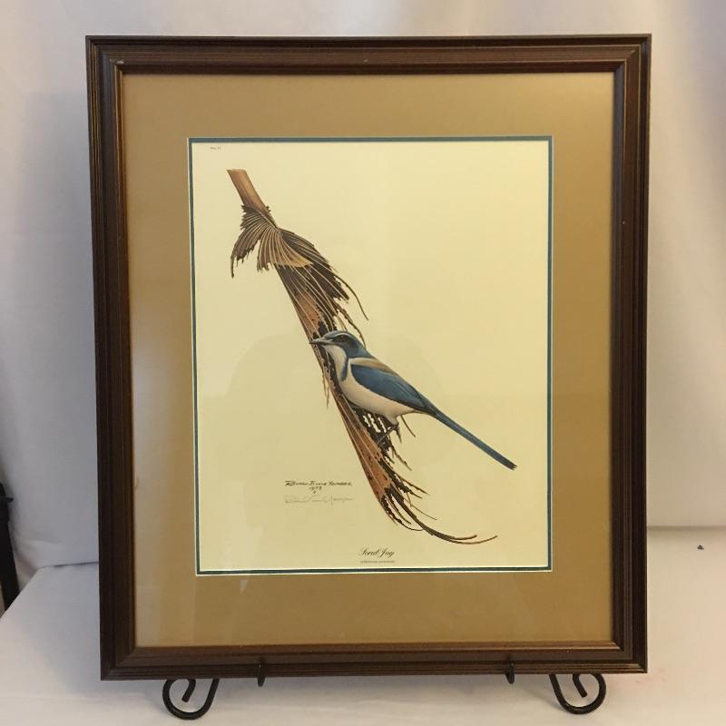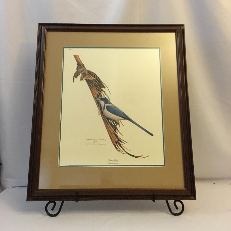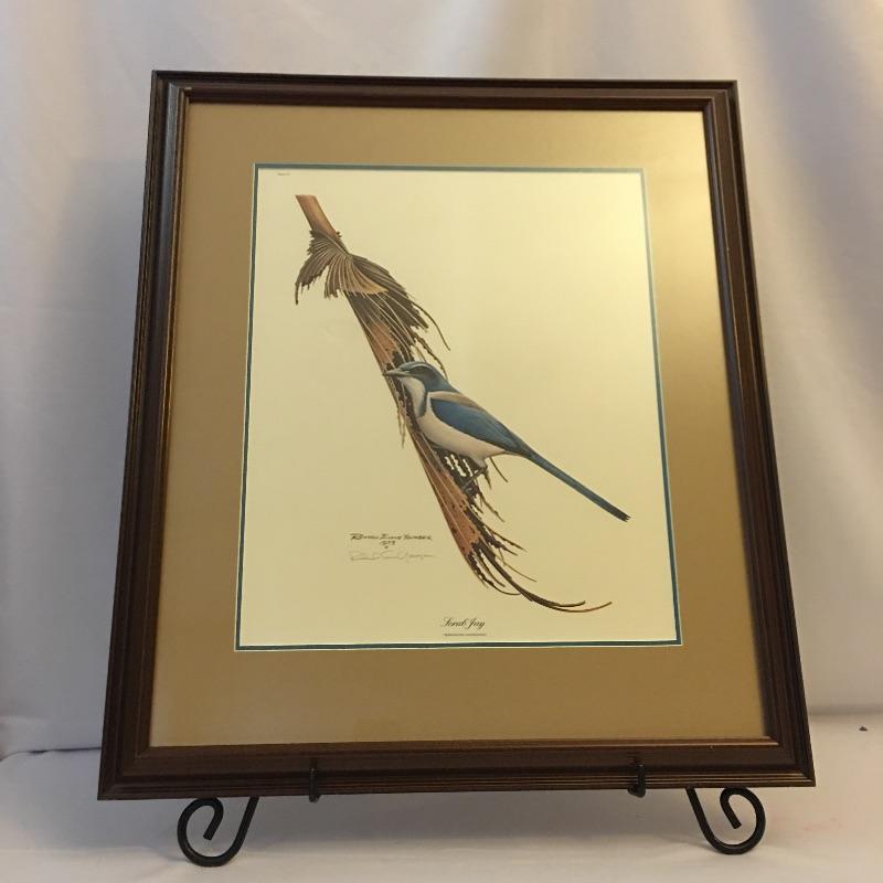 Richard Evans Younger pencil signed, matted and framed artwork titled “Scrub Jay”. Frame measures 24” x 27.5”. A lovely piece for all you ornithologists out there.