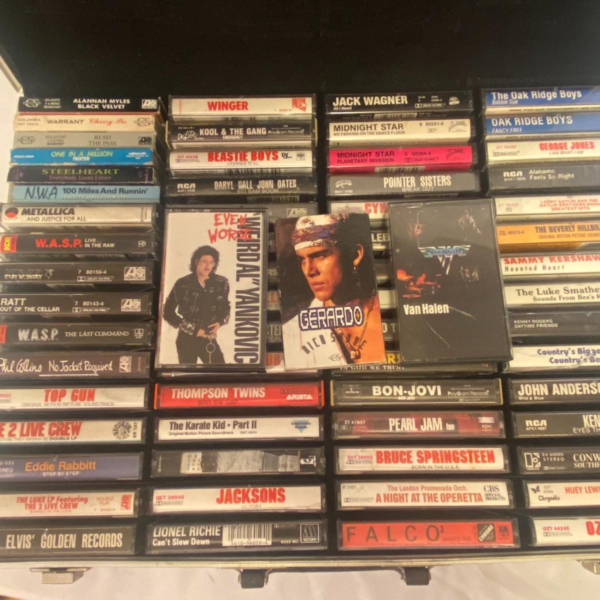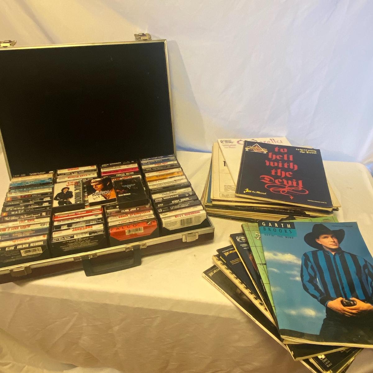 Lot includes many tapes, vinyl records, and sheet music. See photos for details. Highlights include Garth Brooks, Michael Jackson, and Motley Crue. Local pickup only.