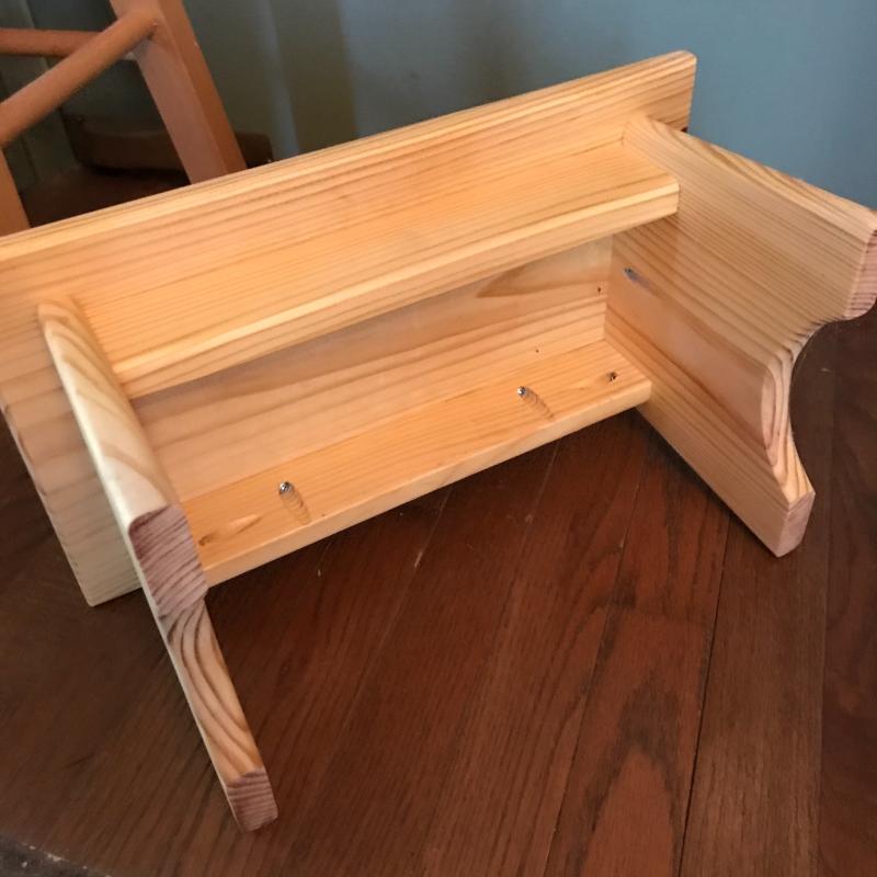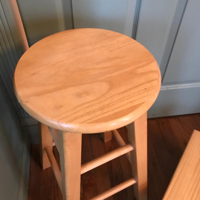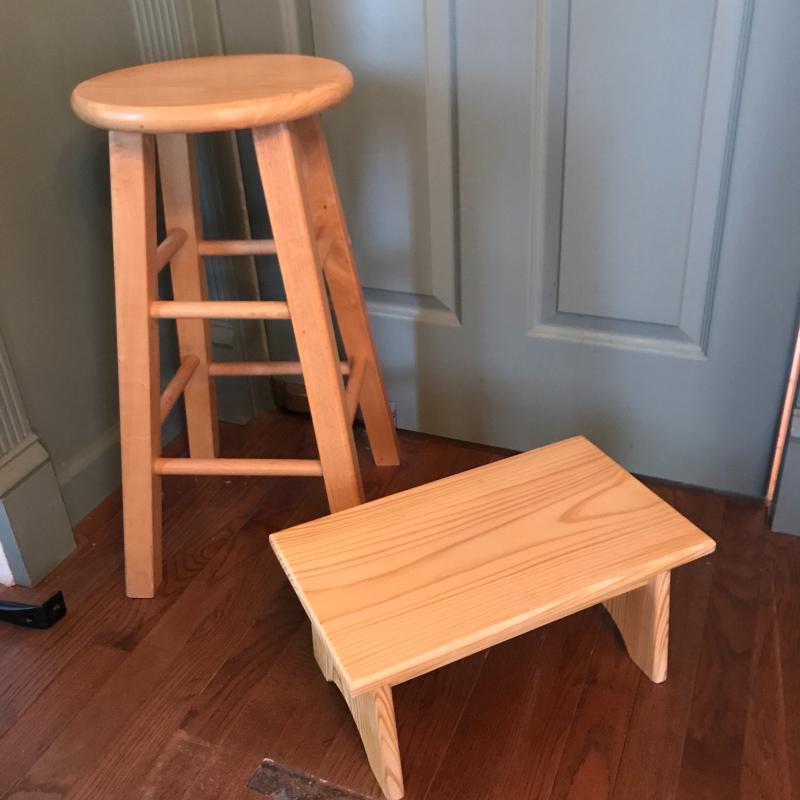 Two light wood colored stools. Bar stool measures 24” high. Step stool is 16”l x 9”w x 8”h. No shipping. Local pick up in Flat Rock, NC.