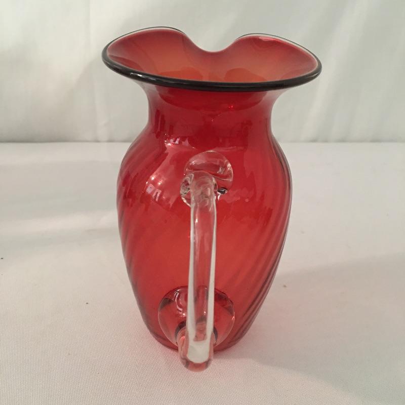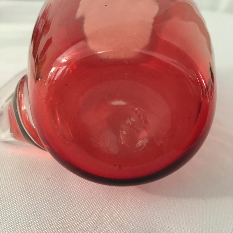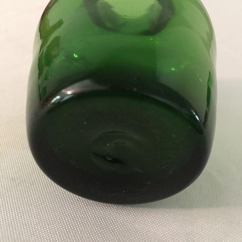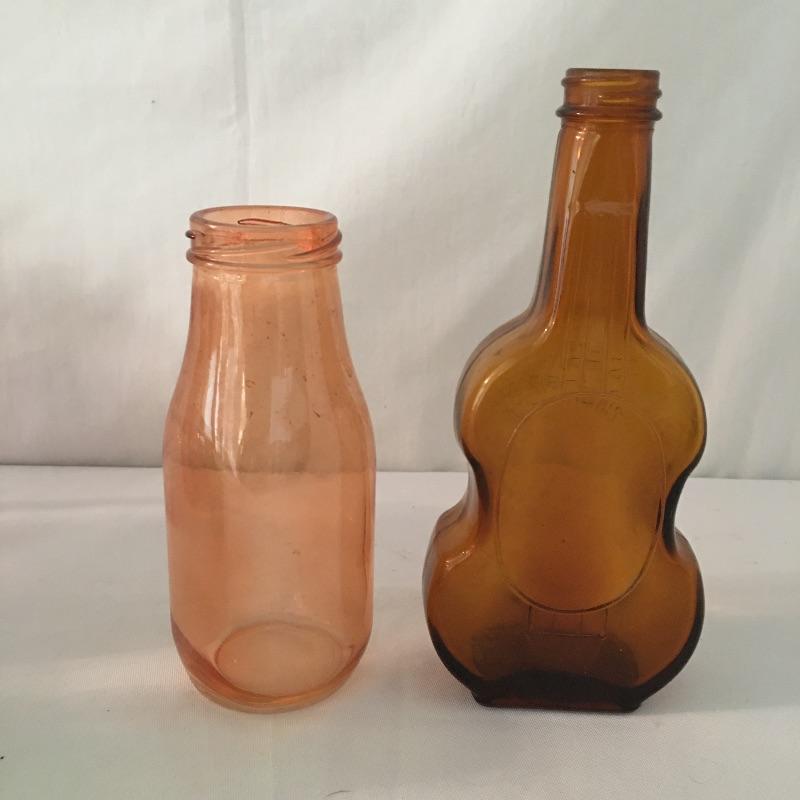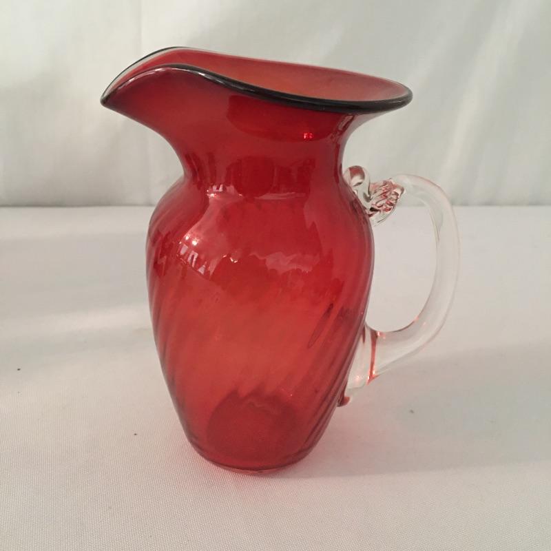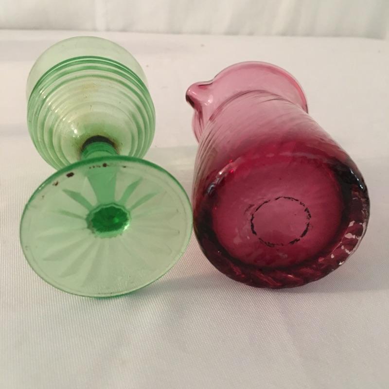 This twelve piece collection of colored glass includes two what appears to be hand blown pitchers, an insulator, a milk bottle, pitcher and an assortment of more bottles.