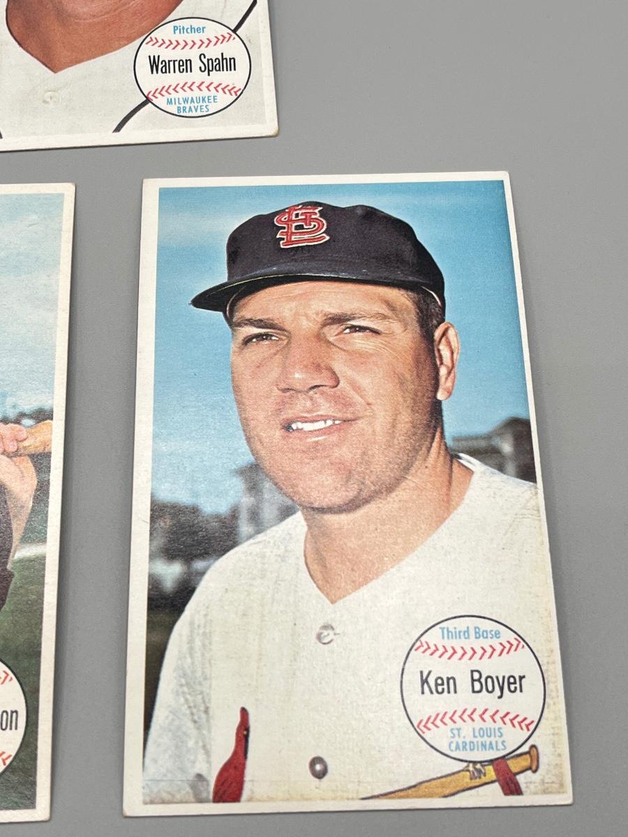 LOT 131B: 1964 Topps Giant Baseball Cards (7) - Clemente, Spahn, Yastrzemski, Kaline, Killebrew, Ken Boyer Brooks Robinson,