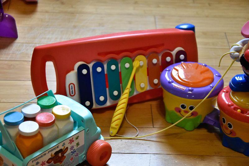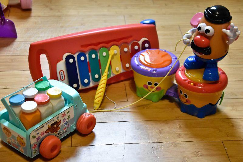 Fisher Price milk truck pull toy, xylophone, Mr. Potato Head, and more. Bring box to remove.