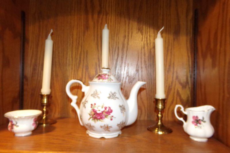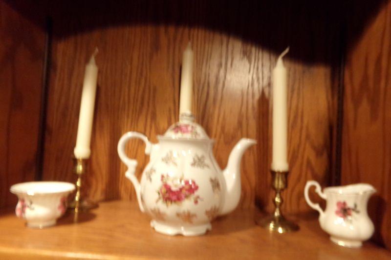 FINE CHINA TEAPOT WITH MATCHING CREAM AND SUGAR