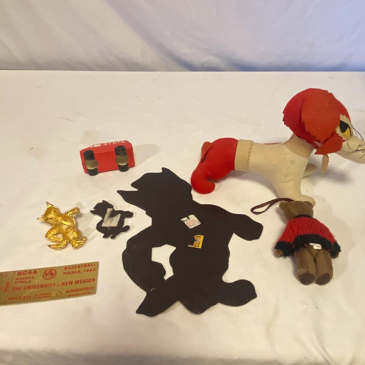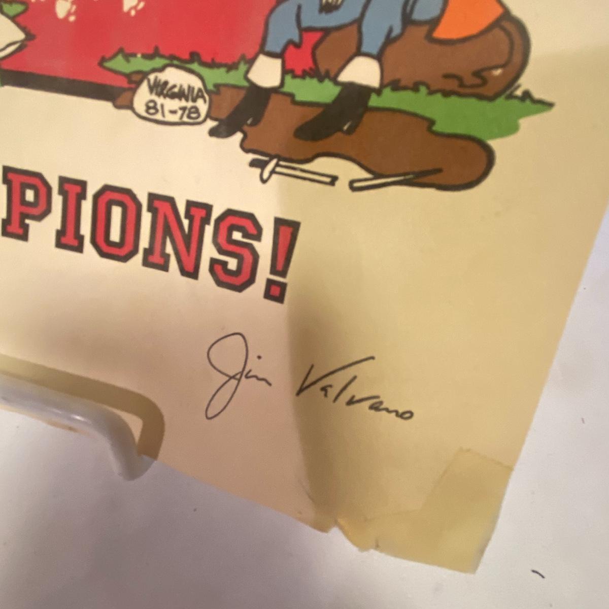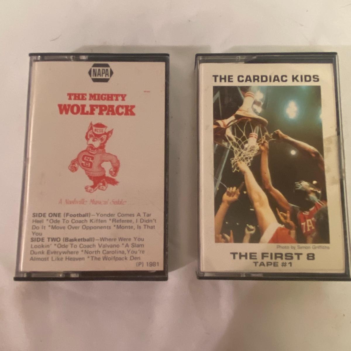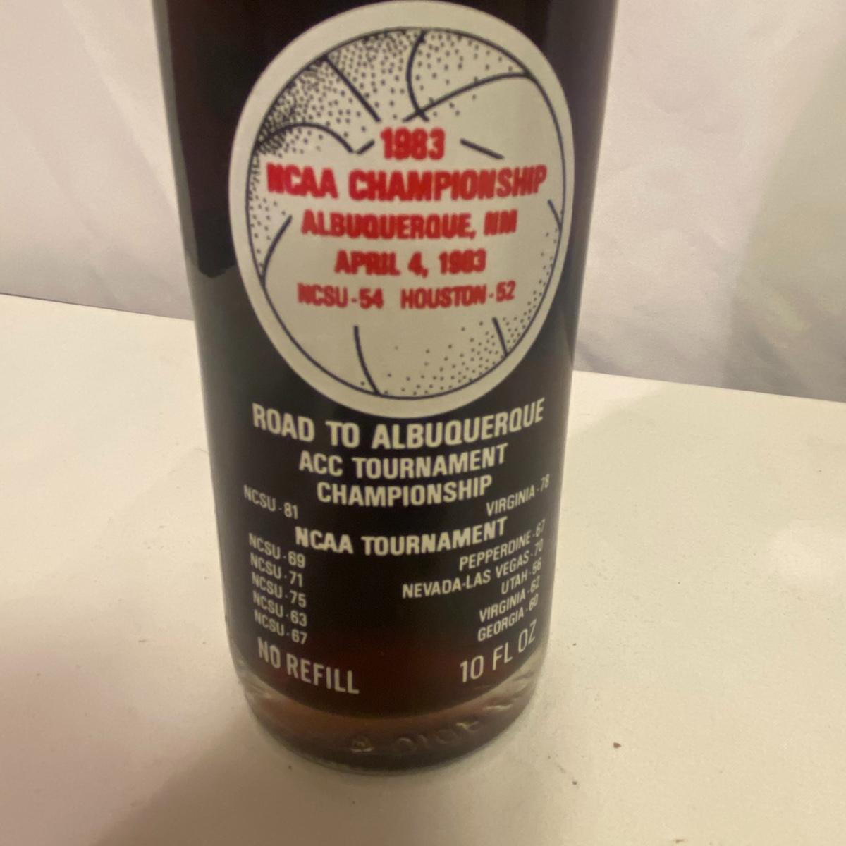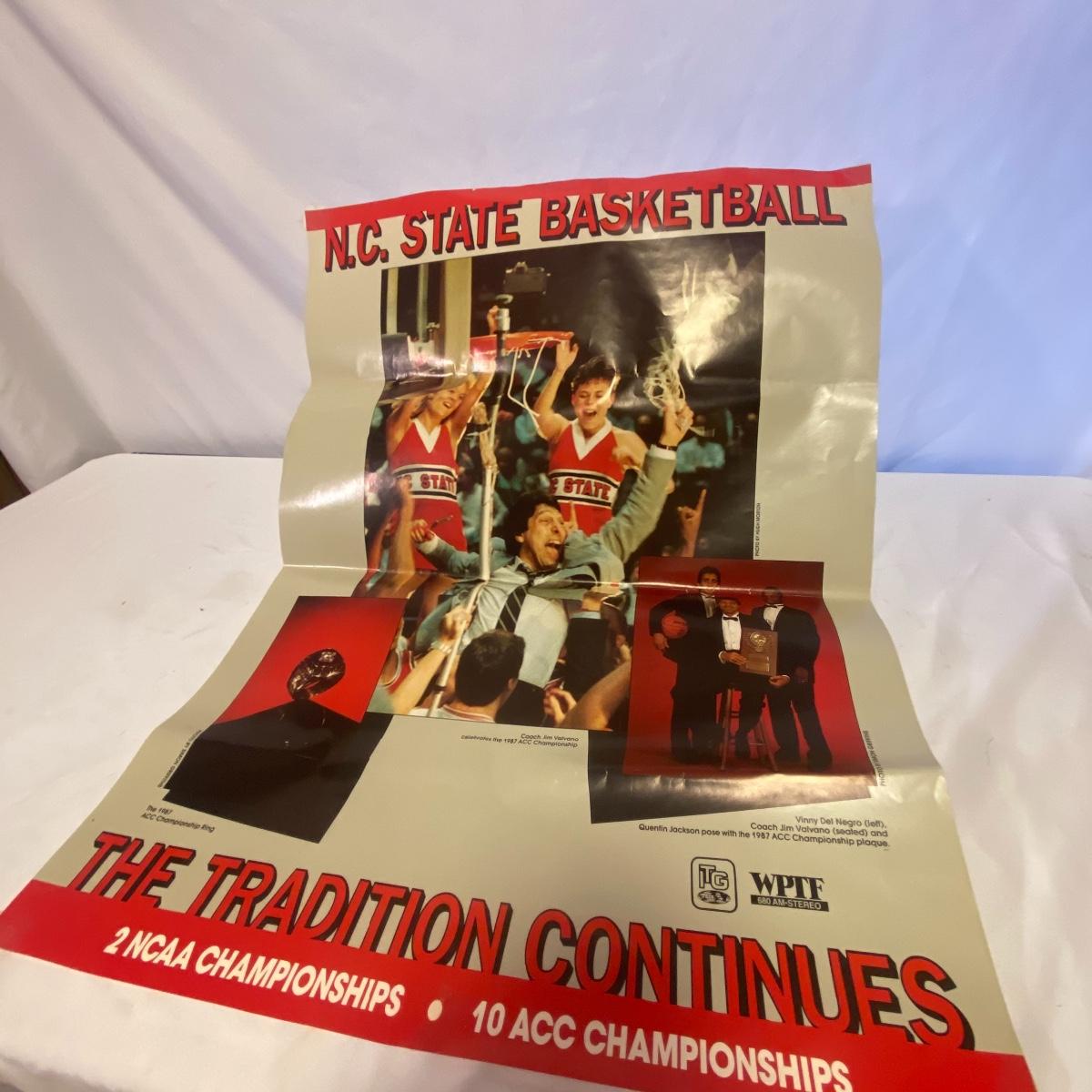 North Carolina State Wolfpack packed lot! Highlighting Valvano glory days! Lot includes five 10" 1983 NCAA Championship Coke bottles. Lot includes other wolfpack championship memorabilia, including Jim Valvano signature on championship posters. See photos. Lot also includes aged NC State stadium chair, measures 12"x12"x15". See photos, Shipping available