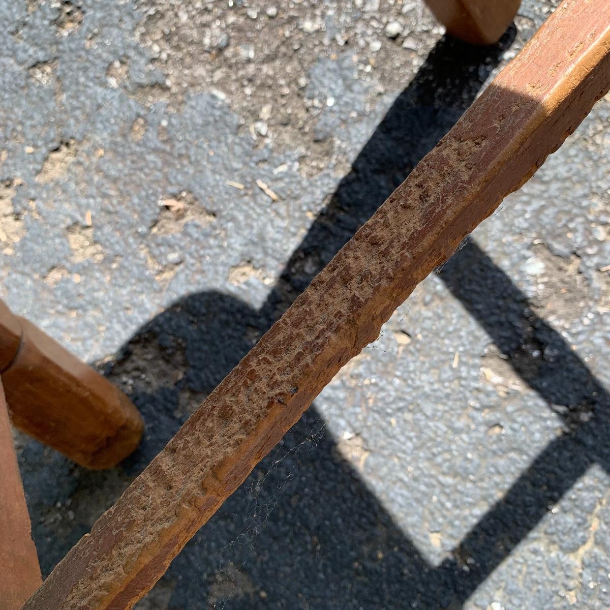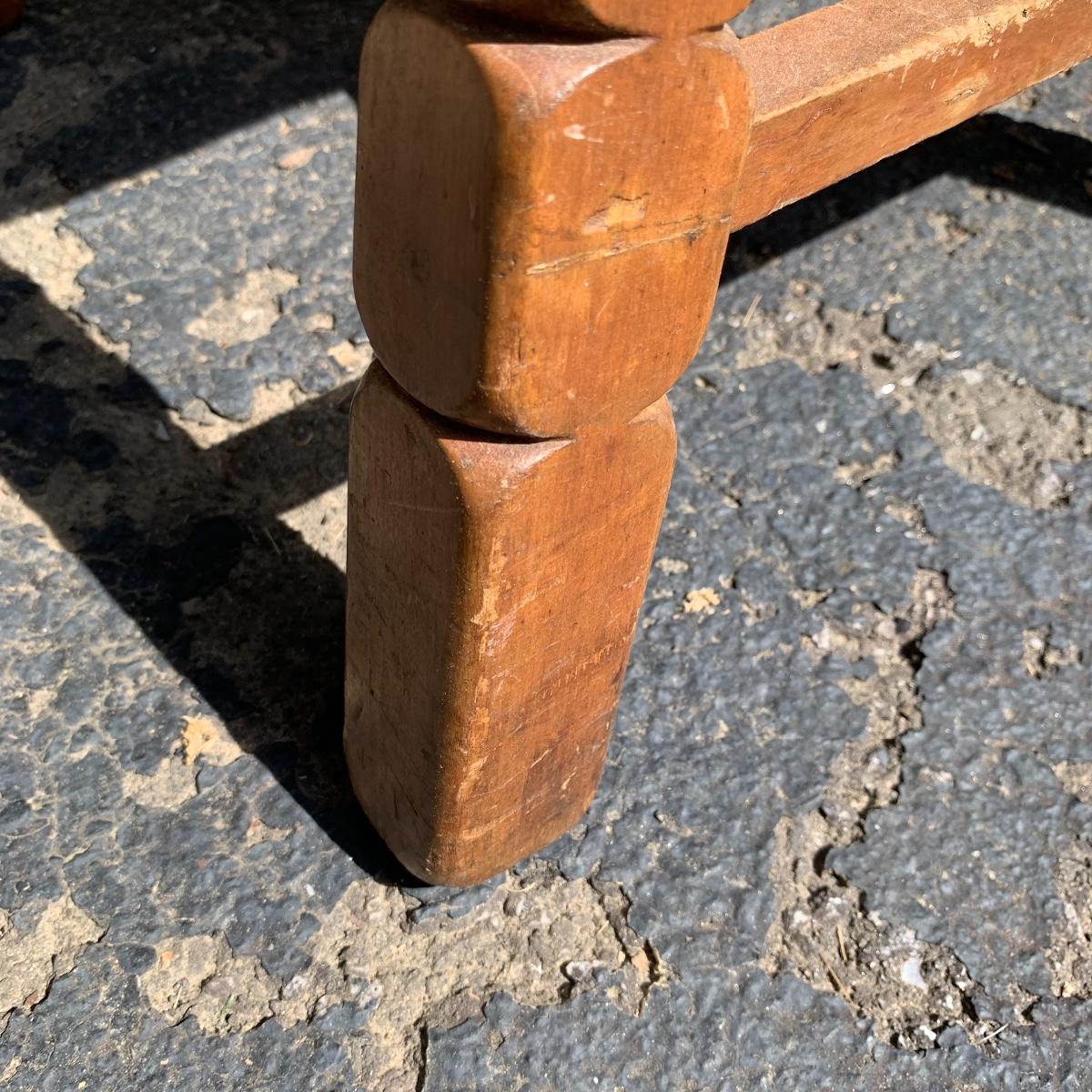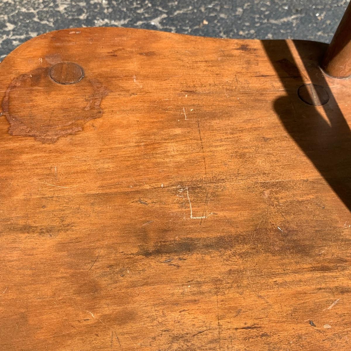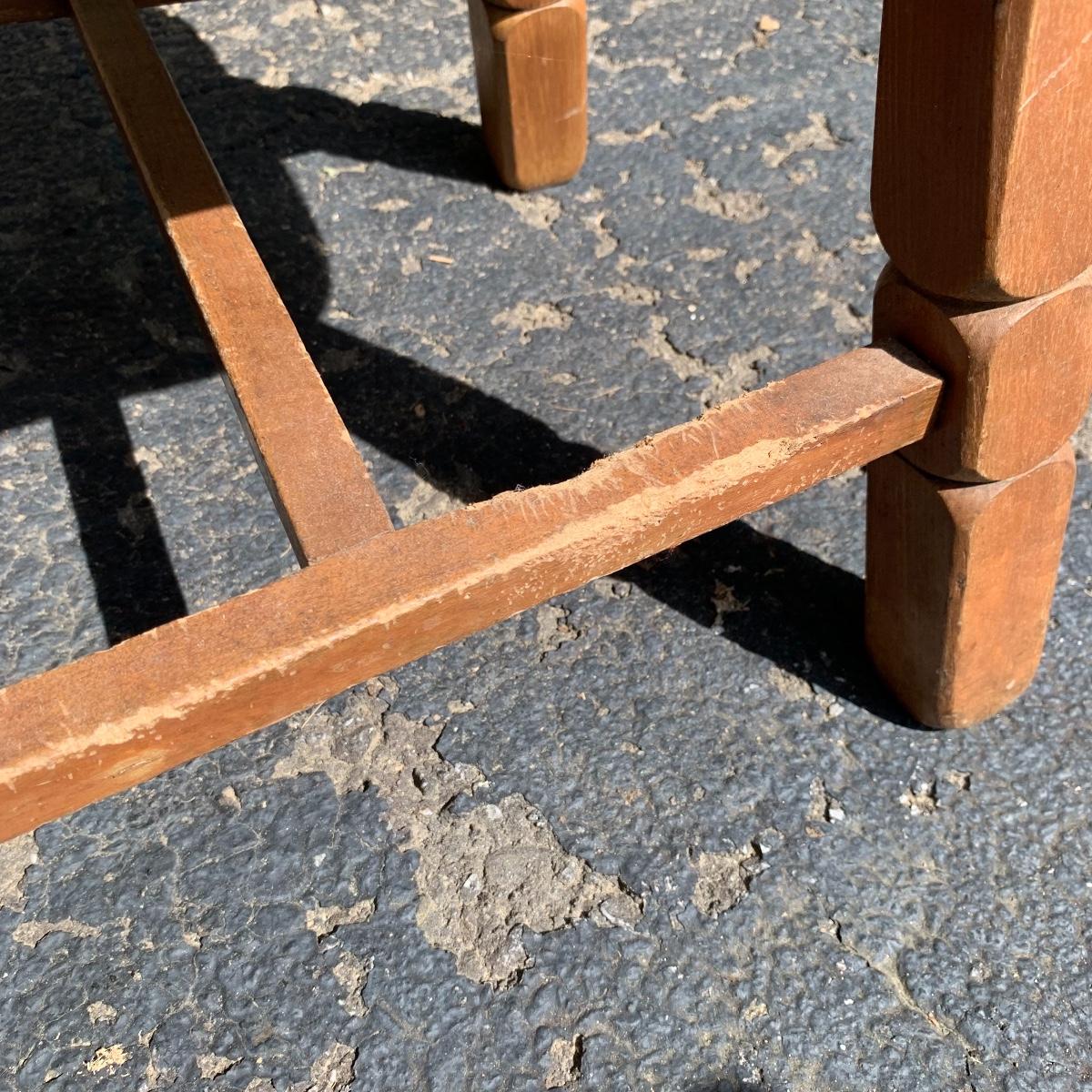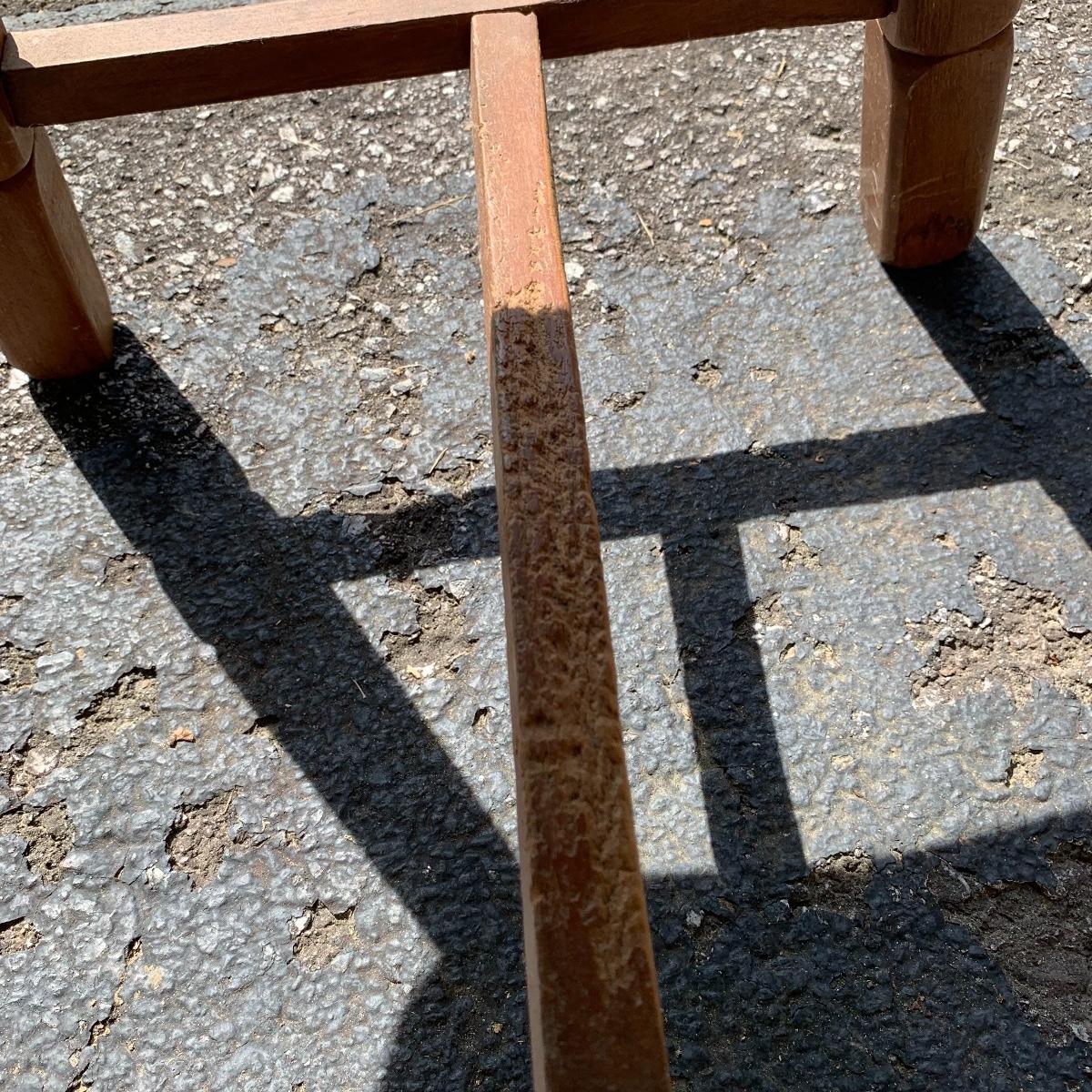 This lot is three nice sturdy wooden chairs. They measure approximately 18” x 17” x 33.5”. The seat height is 17”. They show some wear, signs of scratches and some chew marks, but perfectly sturdy. One of the chairs is missing the small lower pieces of wood that connect the legs. Local pickup only.