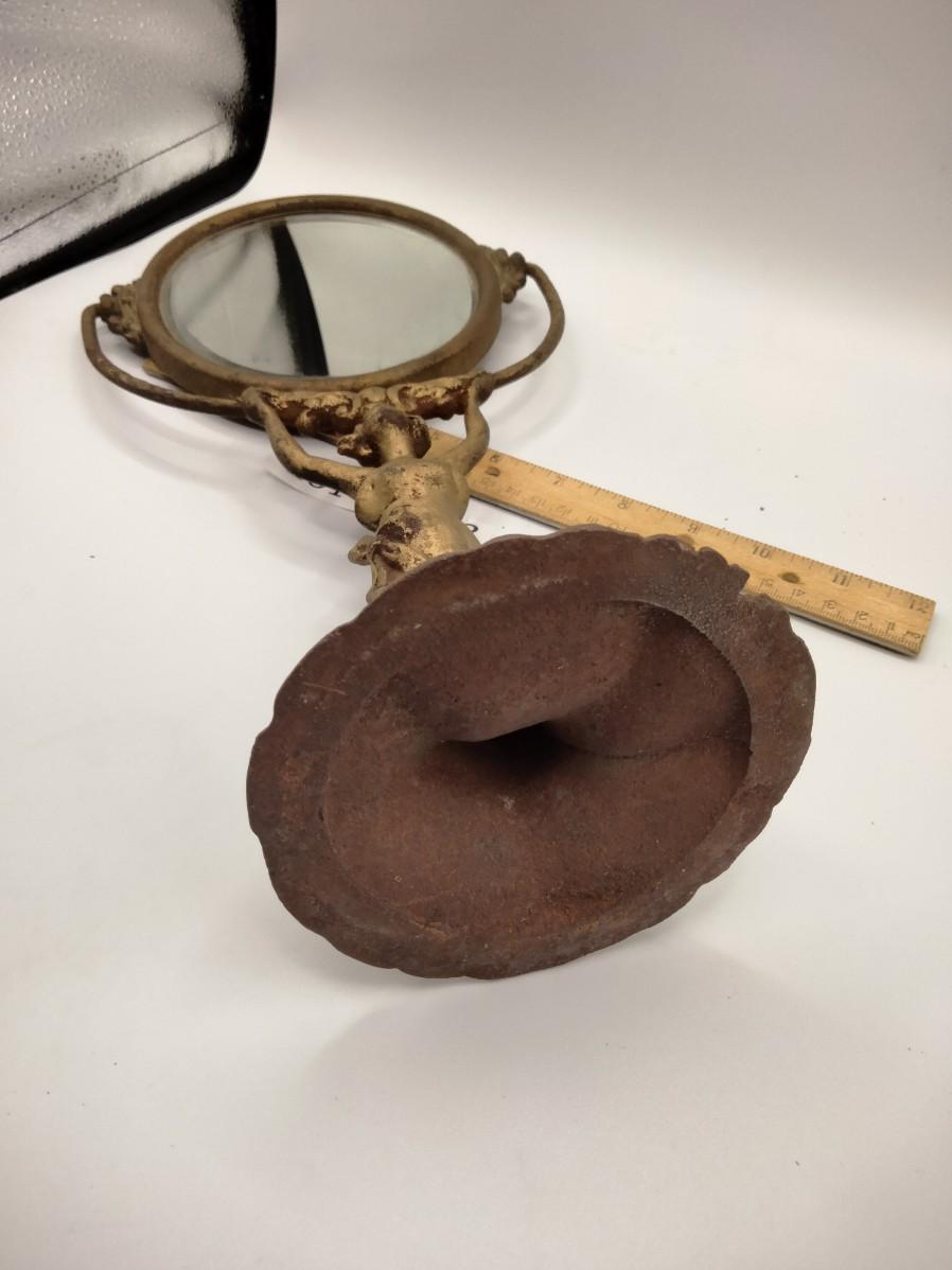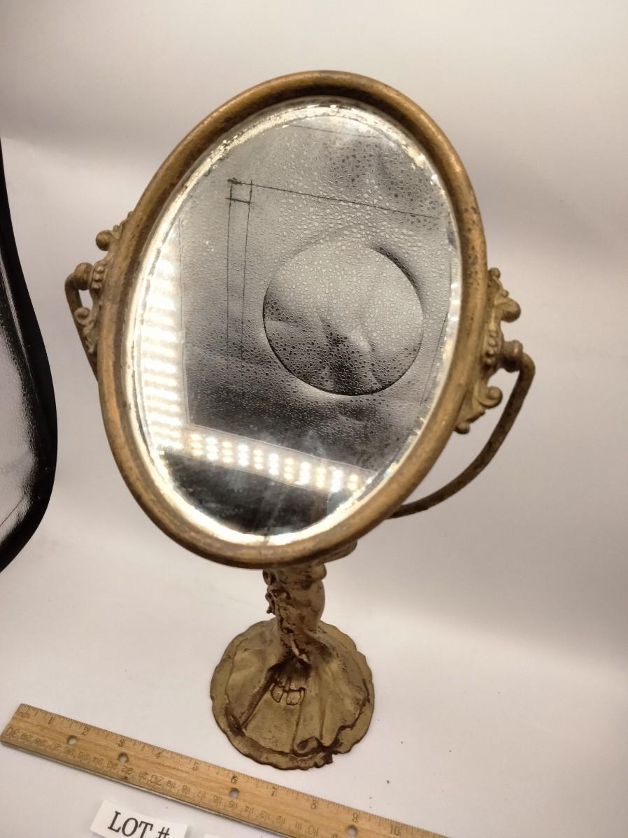 mirror in good vintage condition. rusty metal, could use some TLC to make her sparkle again
