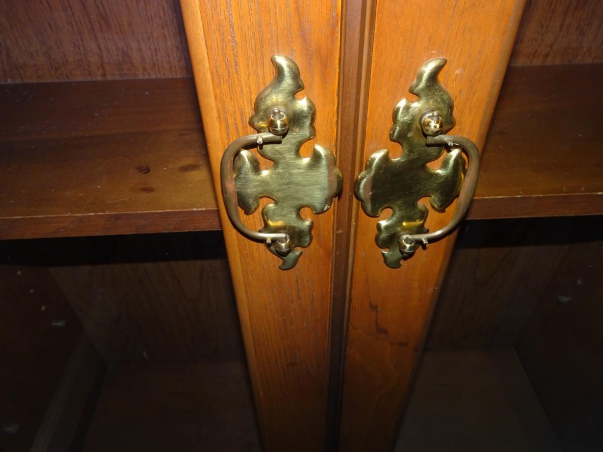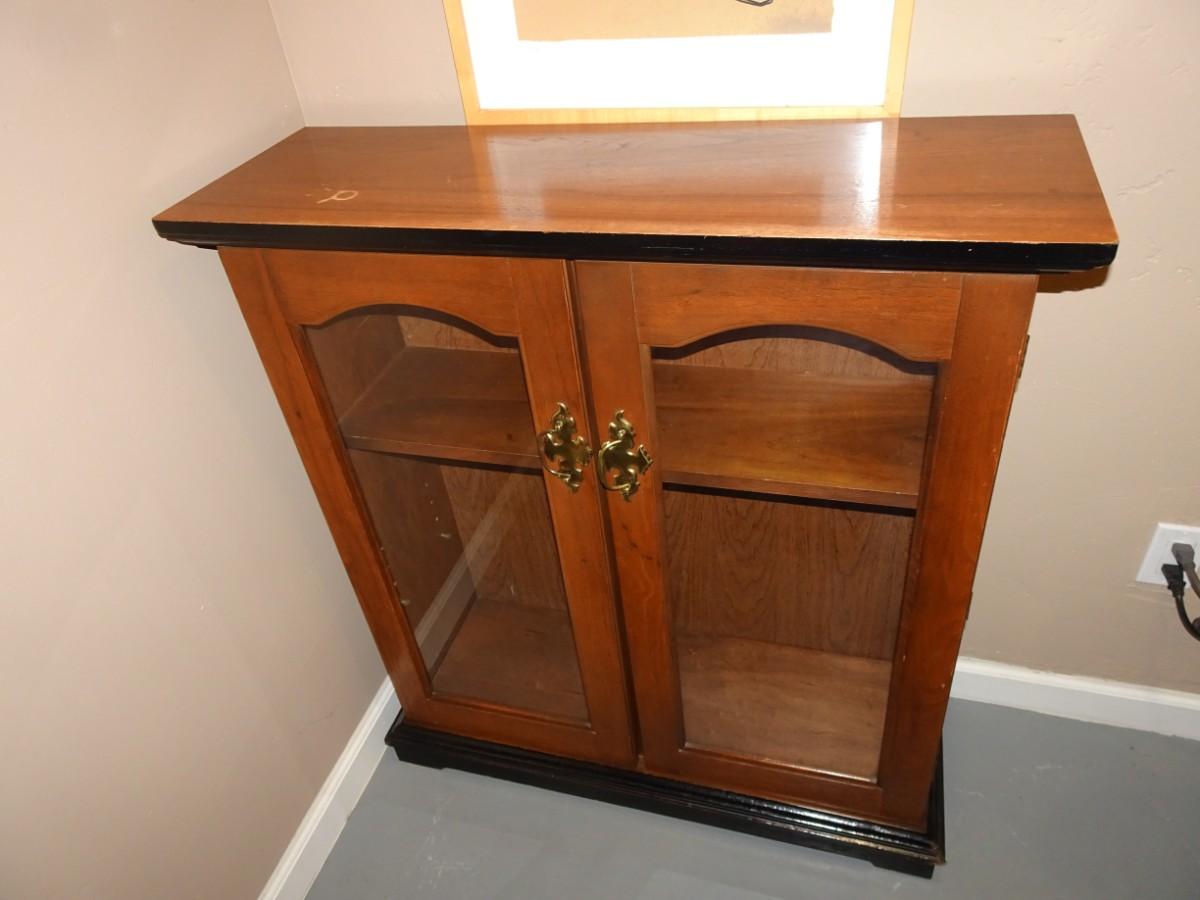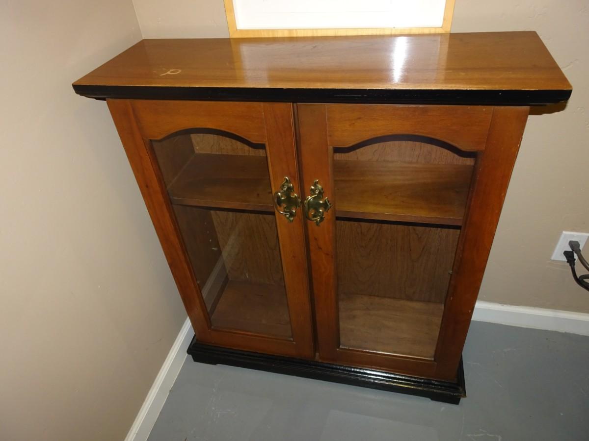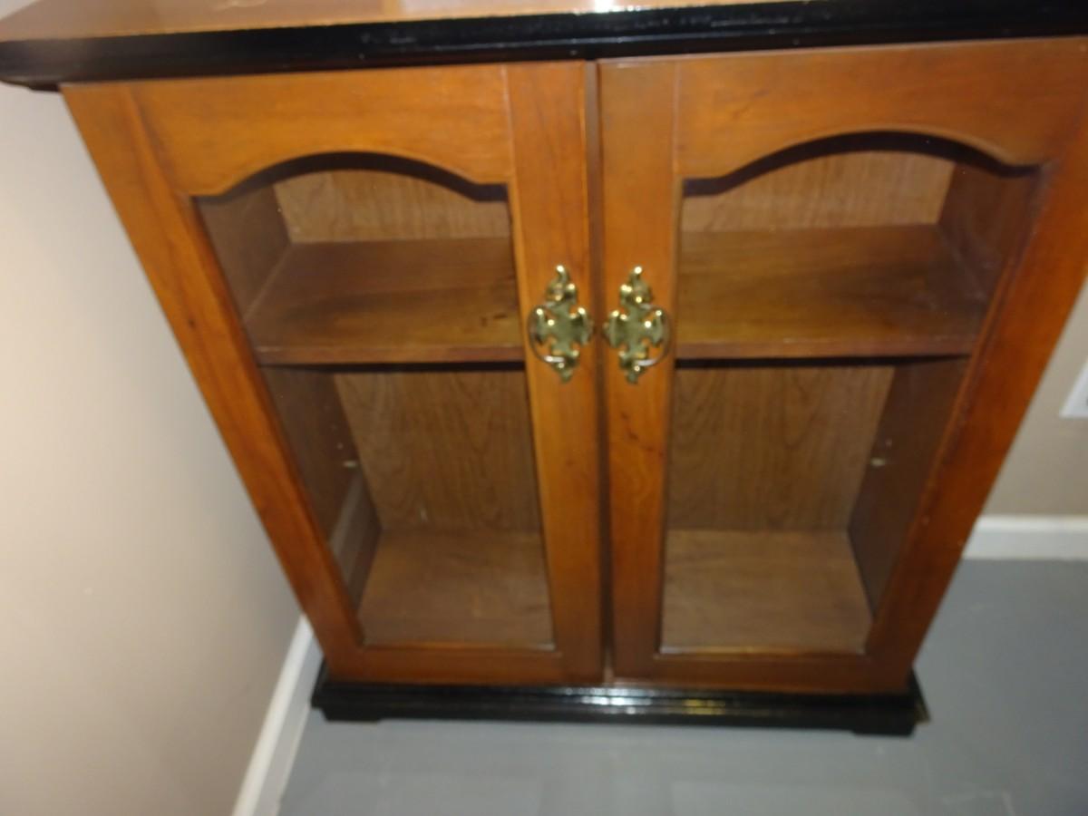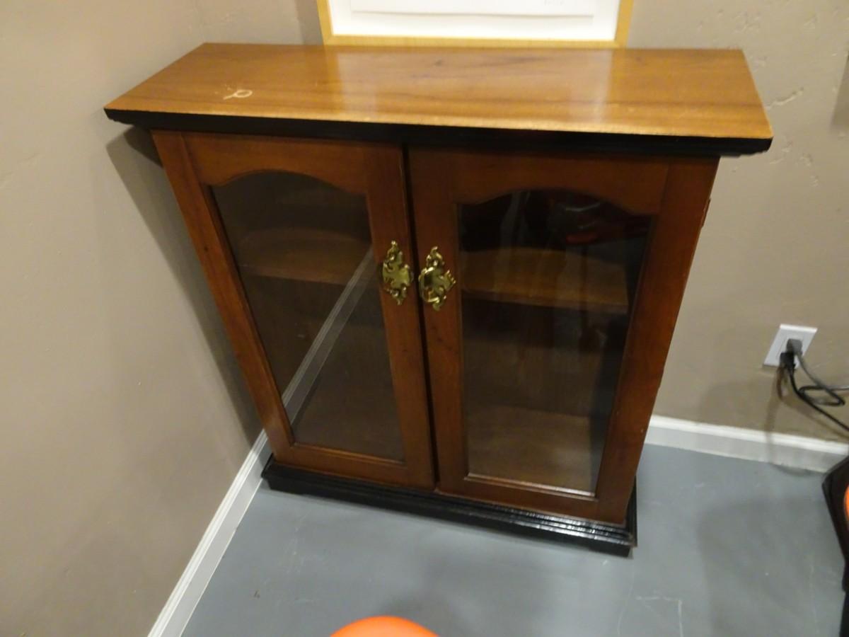 LOT 132. DISPLAY CABINET 36" X 39.5". 12" DEEP. SEE PICS FOR MARKS ON TOP