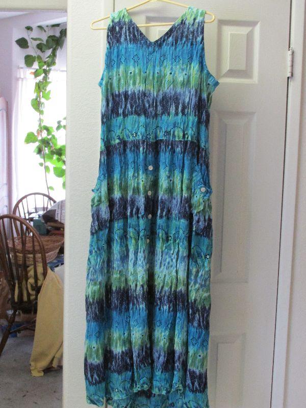 Sleeveless tie dye dress from Biga. Size L. 100% Rayon.