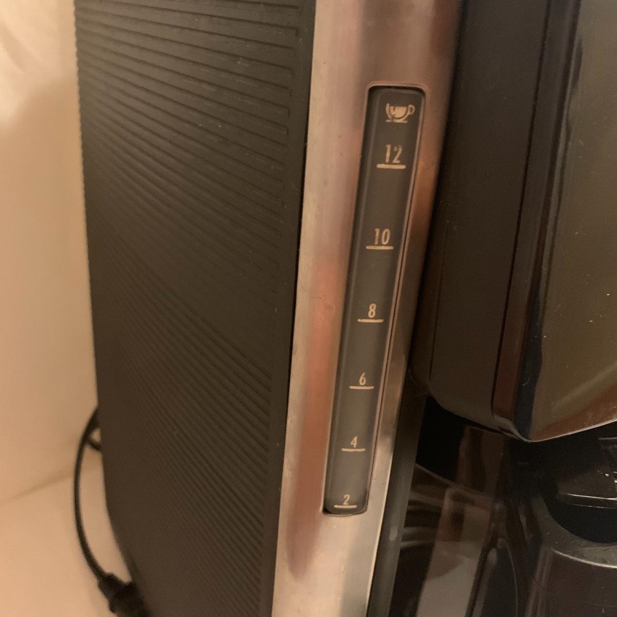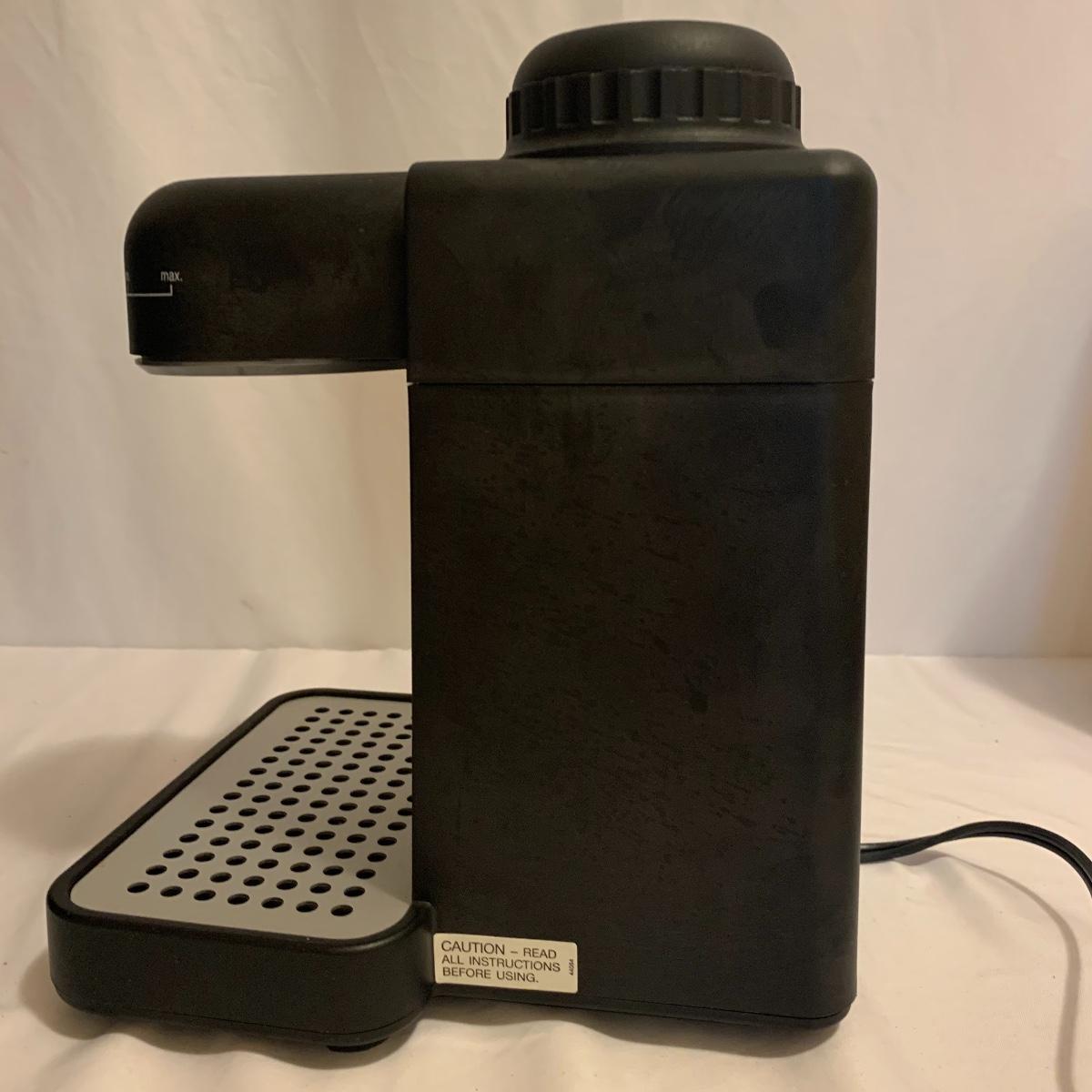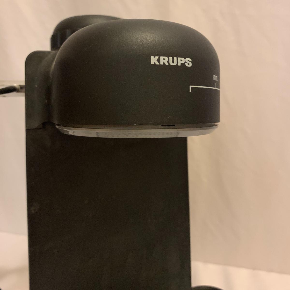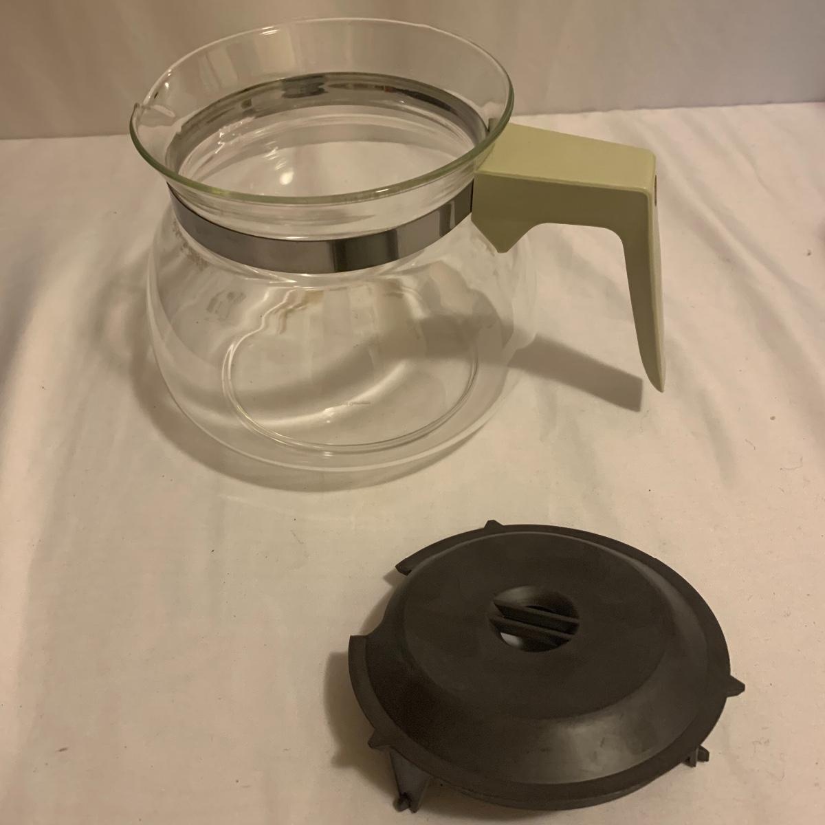This lot includes a Hamilton Beach Coffee maker and coffee pot, a Mr.Coffee coffee pot, a Krups Espresso maker, a coffee mill, a stove top tea pot, coffee thermos, and more. The coffee mill is a little dirty but can be easily cleaned. Cannot confirm that everything works when plugged in. The labels on the buttons of the coffee maker are worn off (see photos). The largest item (coffee maker) measures about 11in x 9.5in x 13.5in. All electric items powered on when tested.