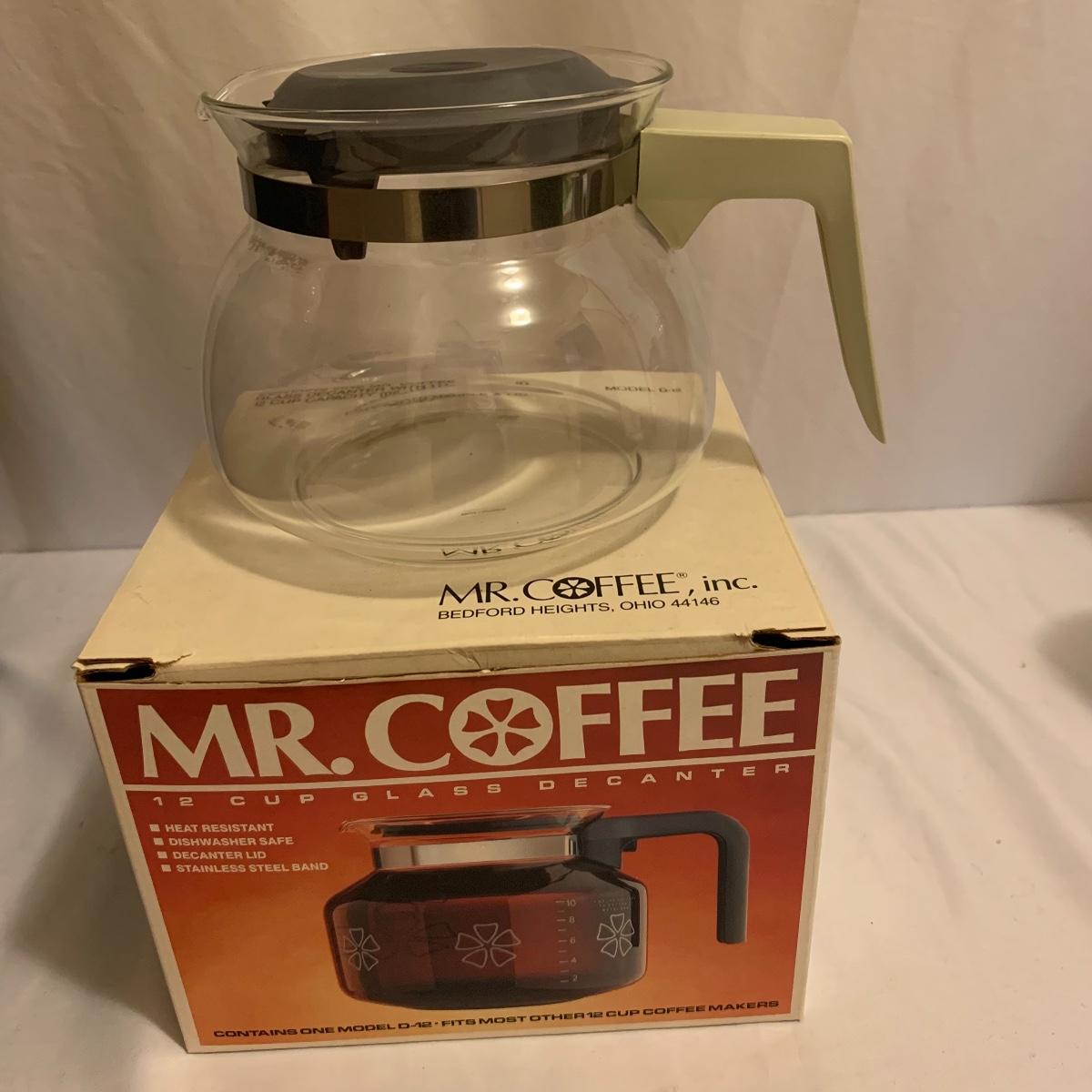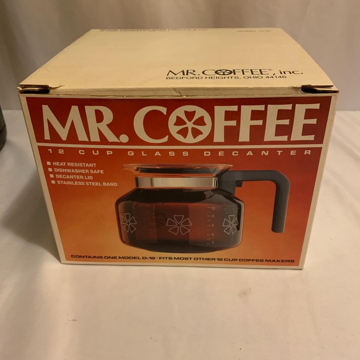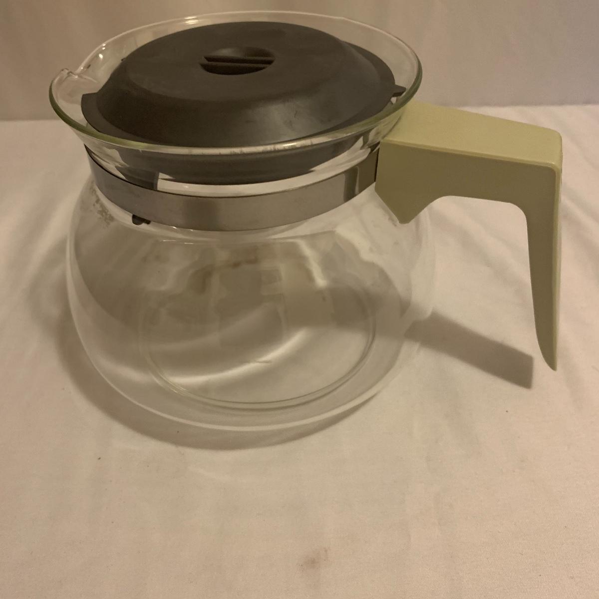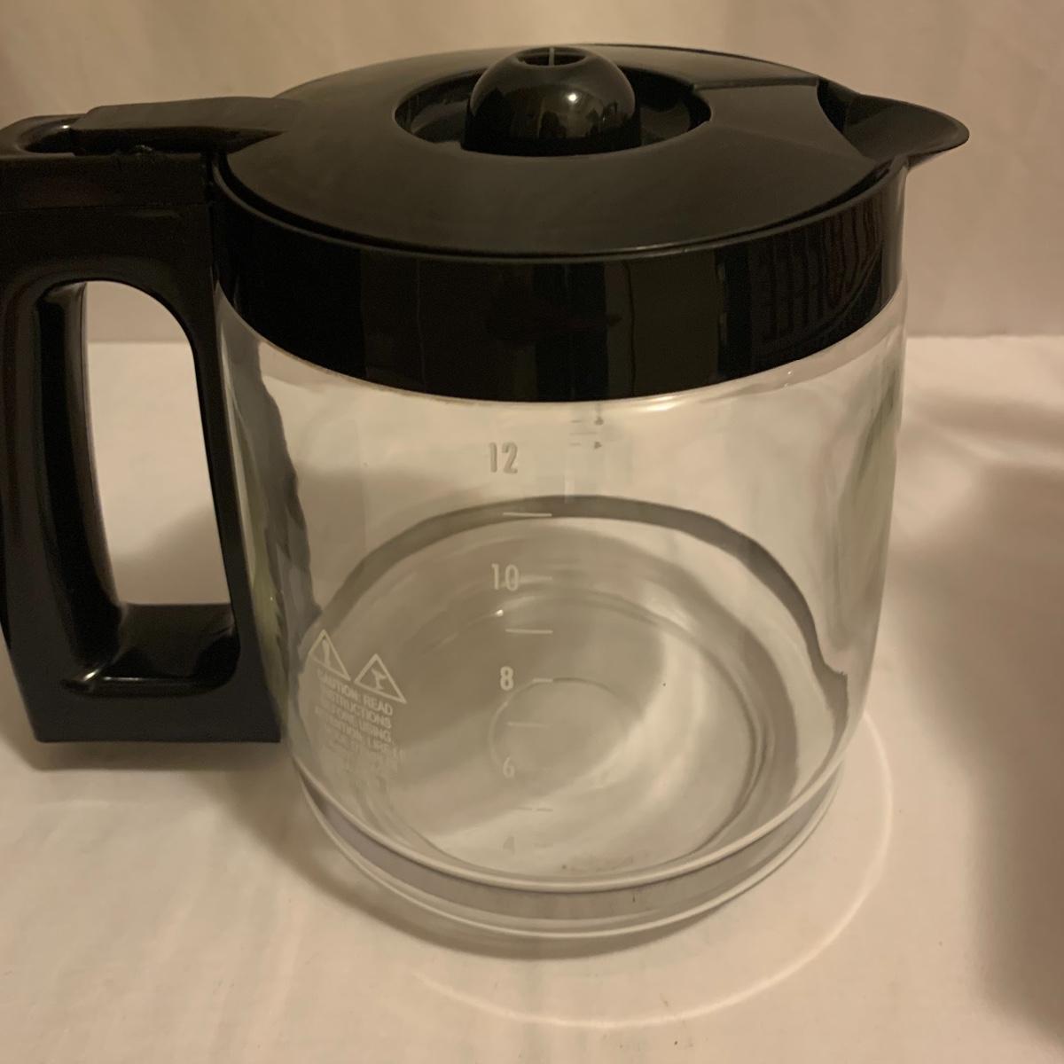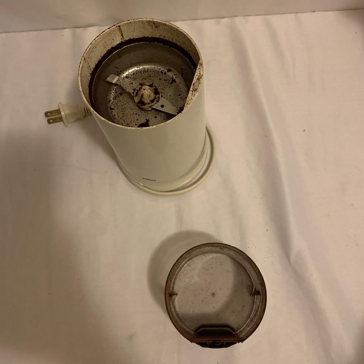 This lot includes a Hamilton Beach Coffee maker and coffee pot, a Mr.Coffee coffee pot, a Krups Espresso maker, a coffee mill, a stove top tea pot, coffee thermos, and more. The coffee mill is a little dirty but can be easily cleaned. Cannot confirm that everything works when plugged in. The labels on the buttons of the coffee maker are worn off (see photos). The largest item (coffee maker) measures about 11in x 9.5in x 13.5in. All electric items powered on when tested.