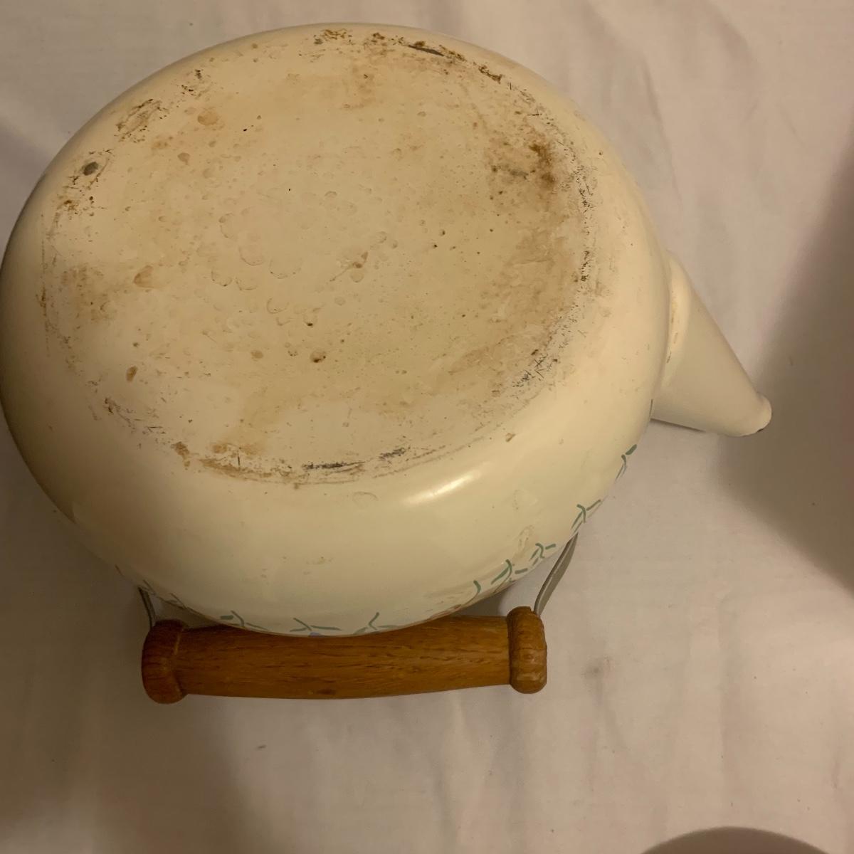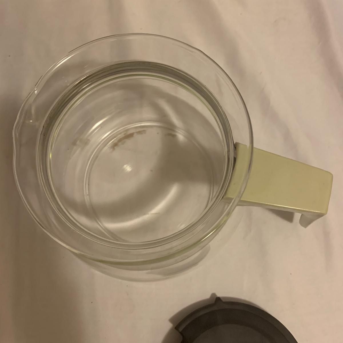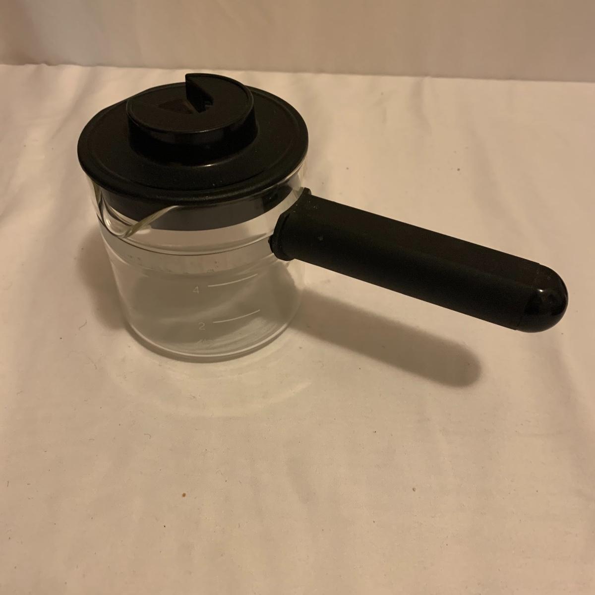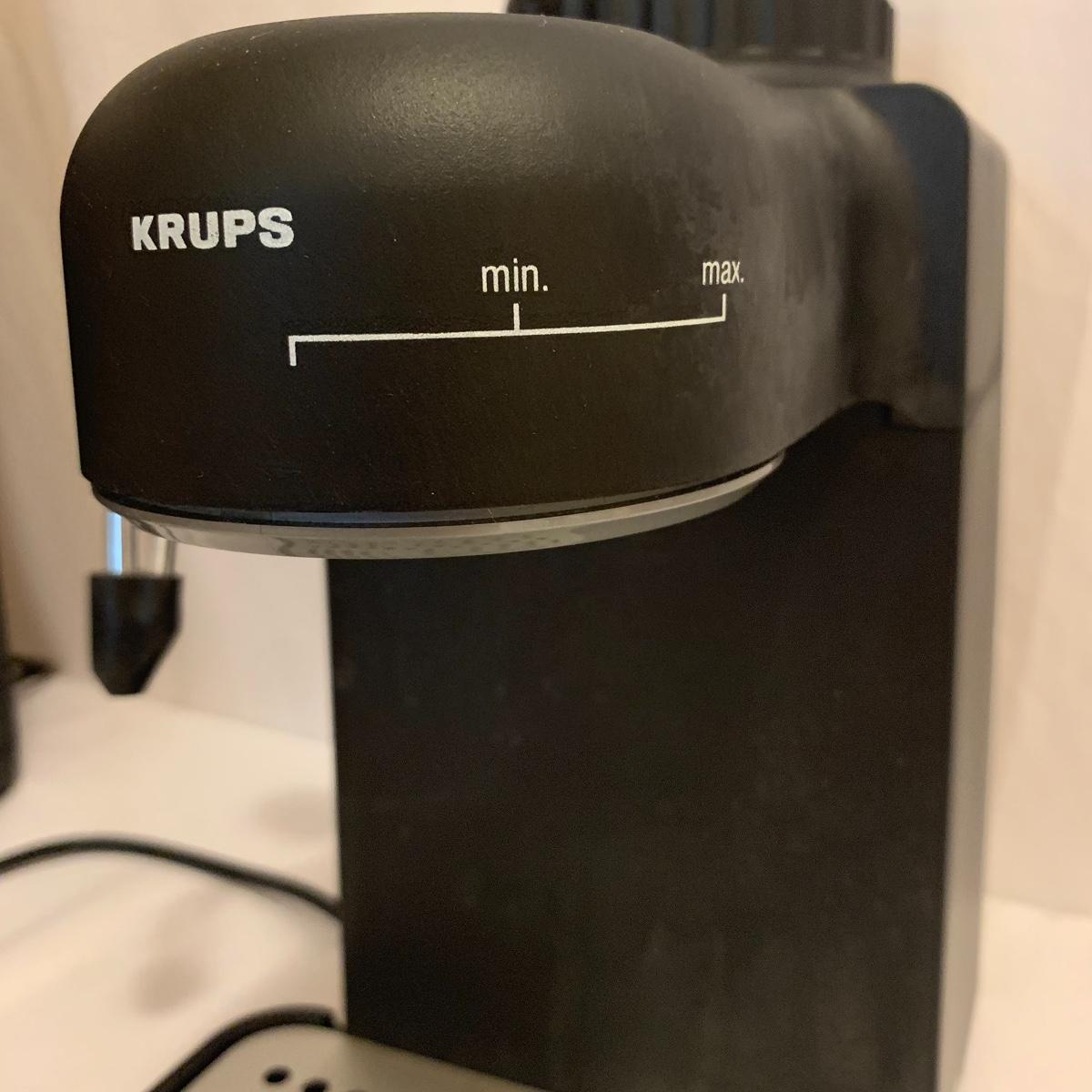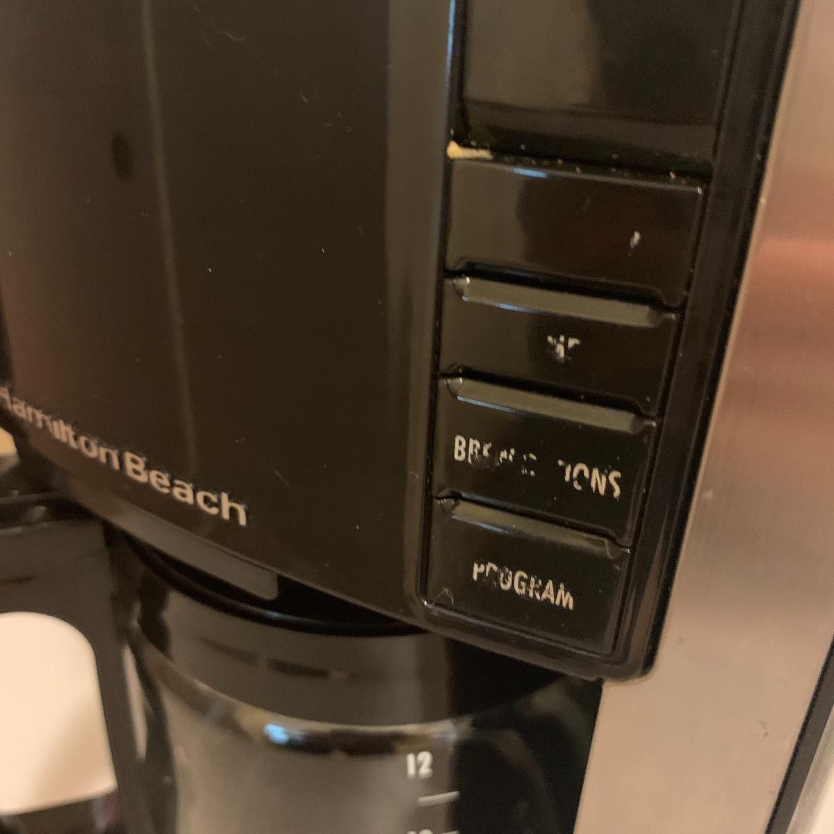 This lot includes a Hamilton Beach Coffee maker and coffee pot, a Mr.Coffee coffee pot, a Krups Espresso maker, a coffee mill, a stove top tea pot, coffee thermos, and more. The coffee mill is a little dirty but can be easily cleaned. Cannot confirm that everything works when plugged in. The labels on the buttons of the coffee maker are worn off (see photos). The largest item (coffee maker) measures about 11in x 9.5in x 13.5in. All electric items powered on when tested.