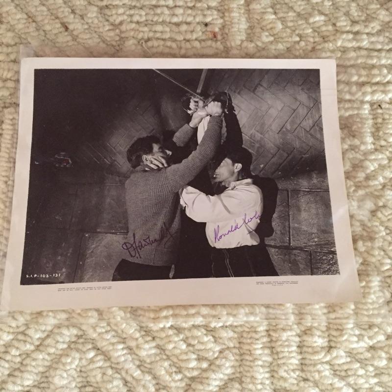 Signed photo of Douglas Fairbanks Jr. and Ronald Colman from the movie The Prisoner of Zelda. No COA. Picture measures 8” x 10”.