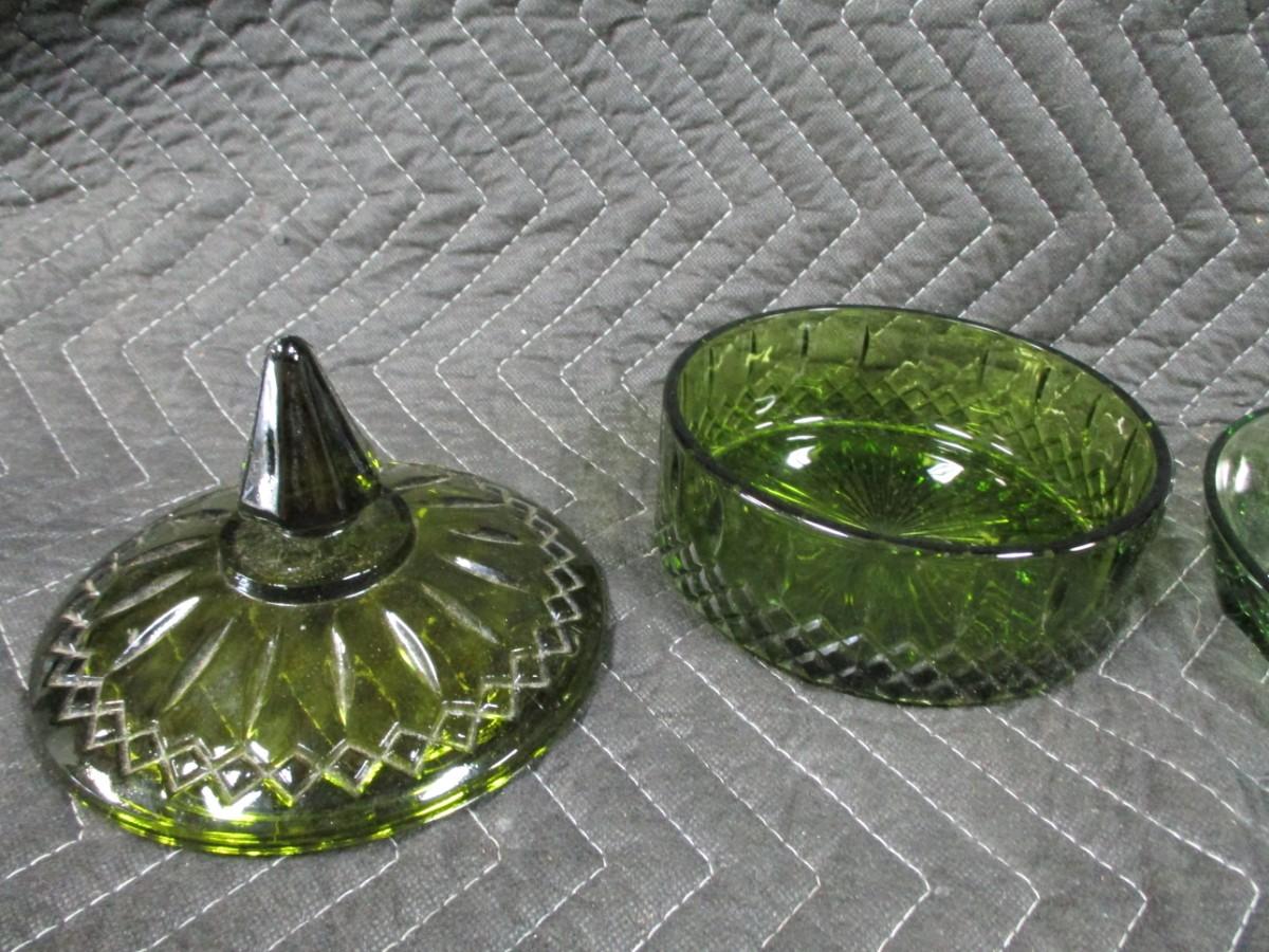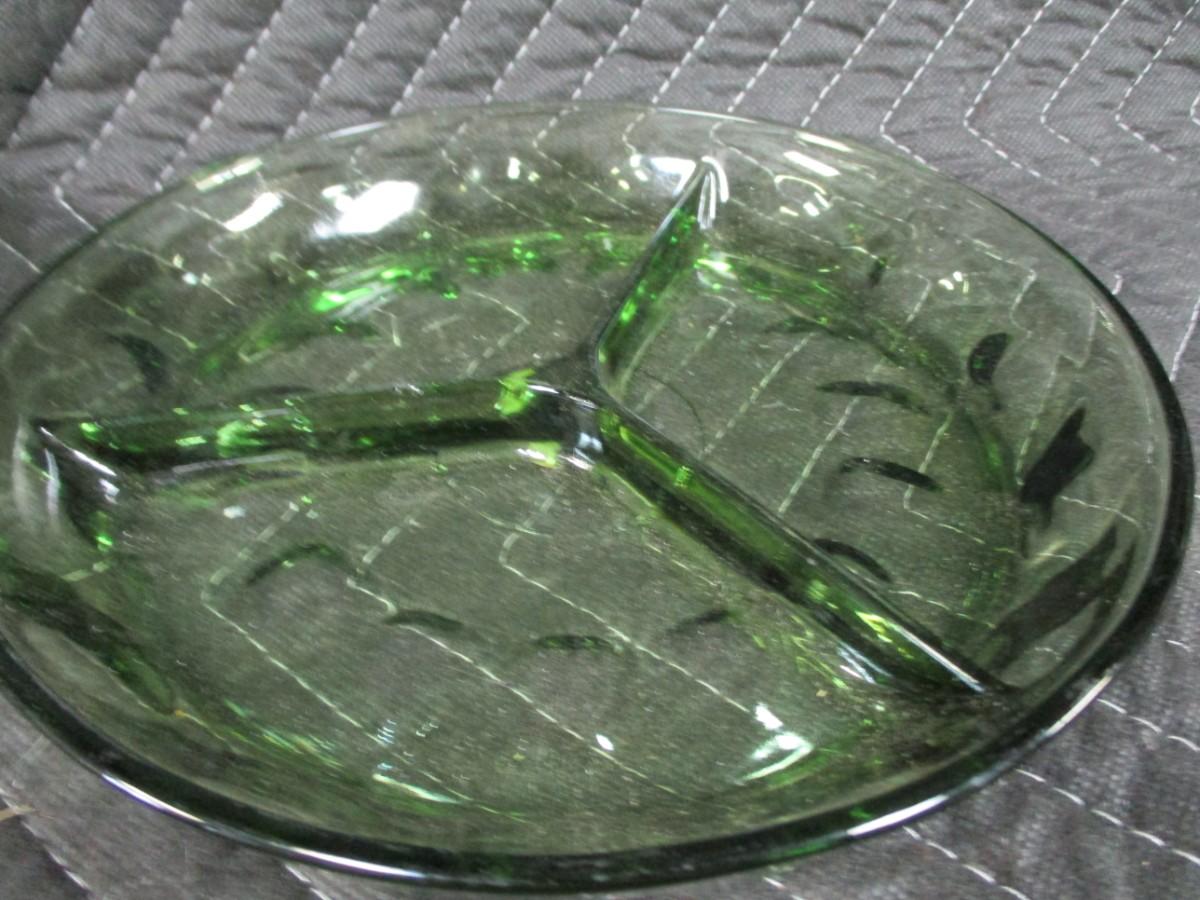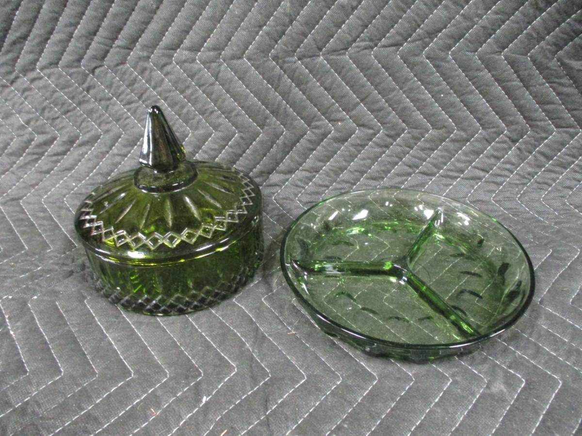 Lot 132 - Green Candy Dish & Divided Condiment Dish