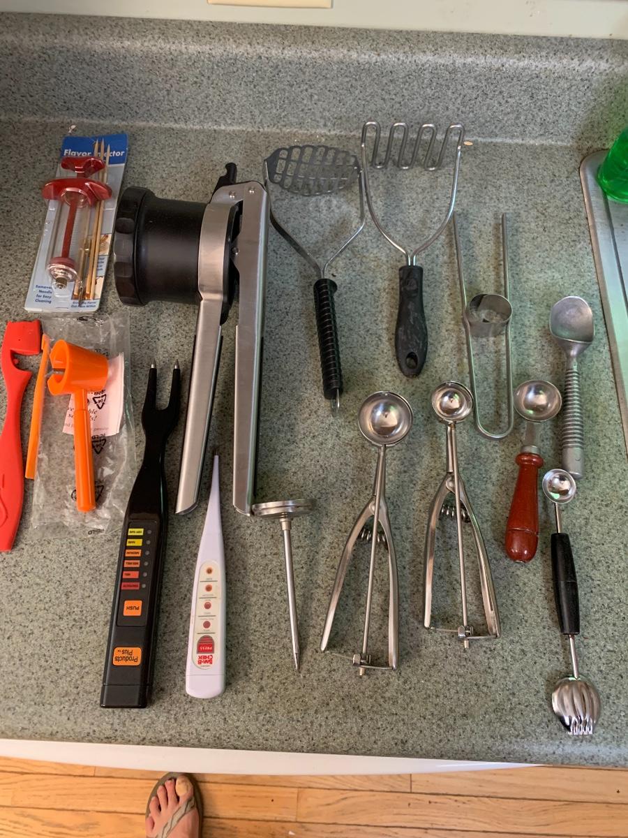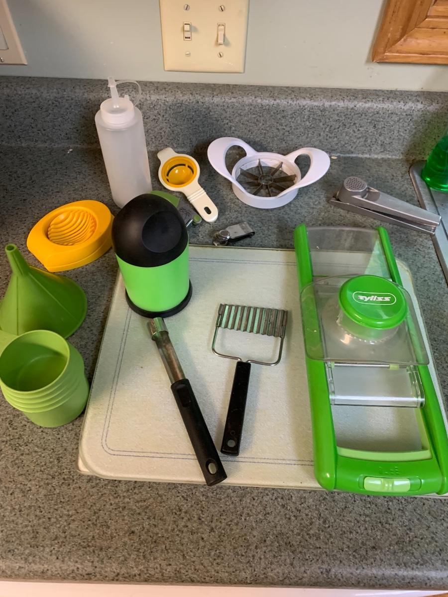Will use something or not. Everything from melon scoops, to thermometers and graters. There is a nice lime green theme with a few items. Local pick up only.