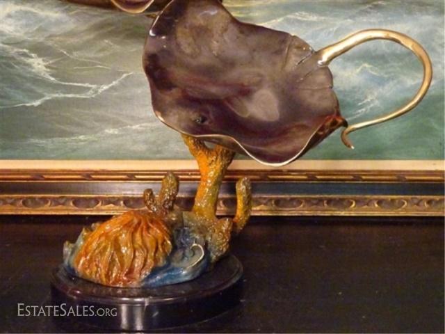 LOT 132: LARGE BRONZE STINGRAY SCULPTURE