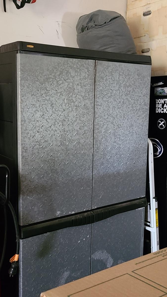 This large cabinet is designed to look like metal but it is not. It can store a lot. It does not come with the contents. 35x21x71 inches. Please see all pictures for content of the lot, condition of the lot, and measurements if taken. Pictures are the best representation of the items listed and items are untested unless indicated in description. Thank you for looking and have fun bidding!
