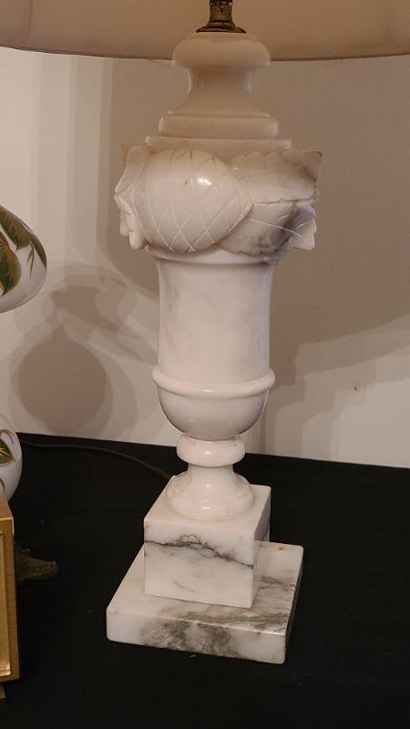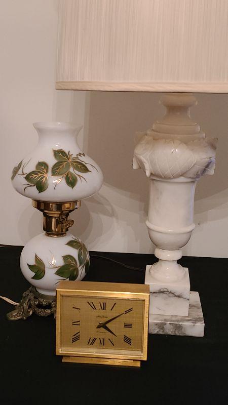 Heavy Marble lamp, small table lamp, and clock. Please see all pictures for content of the lot. CLS