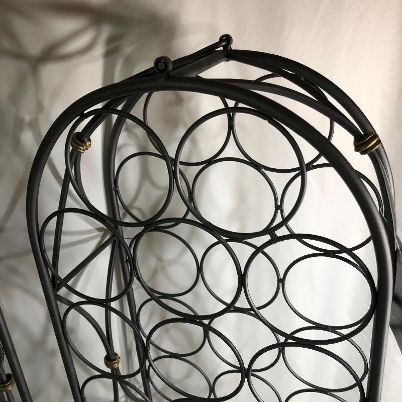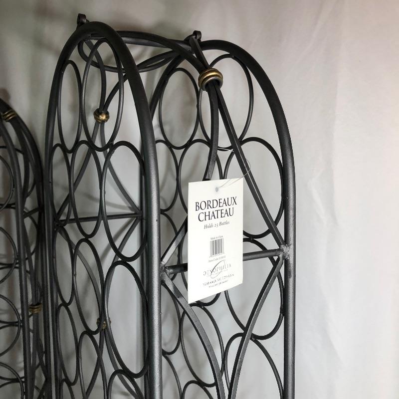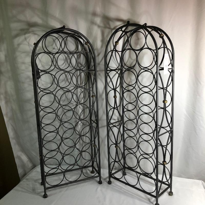 These two matching modern wine racks still have their tags on. Each one holds up to 23 bottles, so between these two, that should get you through the week! This is a whole lot of storage for just 2 small streamlined racks. The metal racks measure 5.5” D x 13” W x 35”.