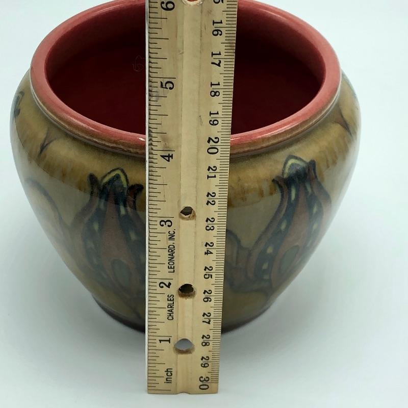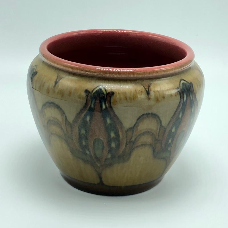 Rookwood vase by Sara Sax , d. 1926, highly stylized floral design, with red interior from the Persian Line.