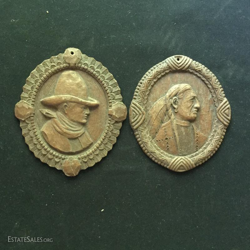 Lot 132: Small Carved Cowboy and Indian Plaques