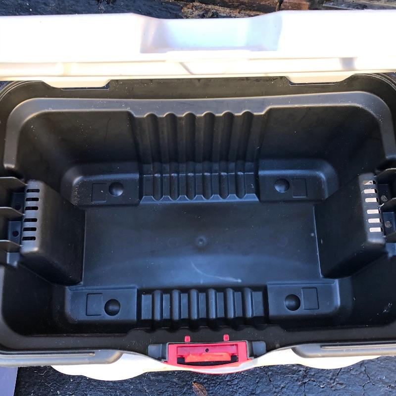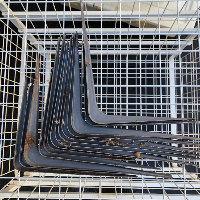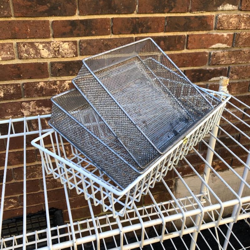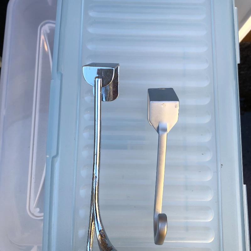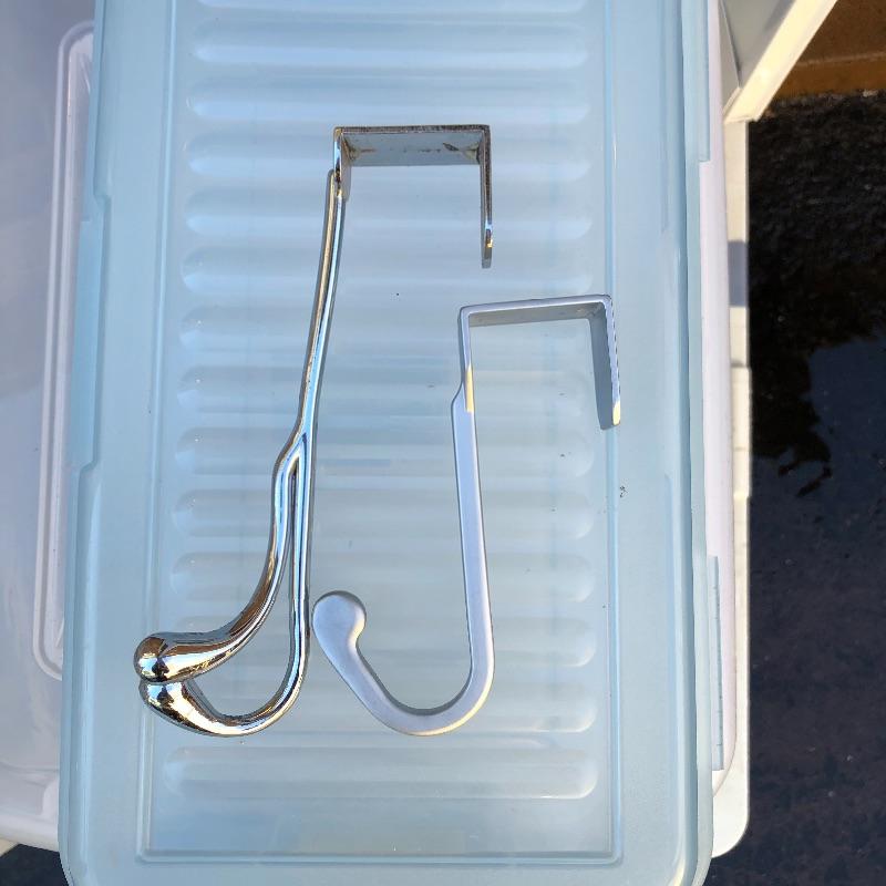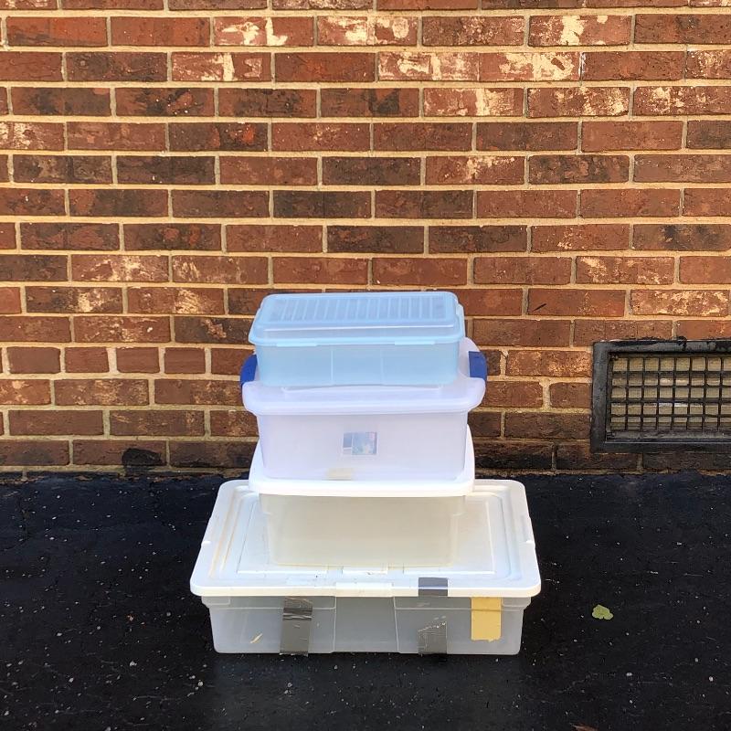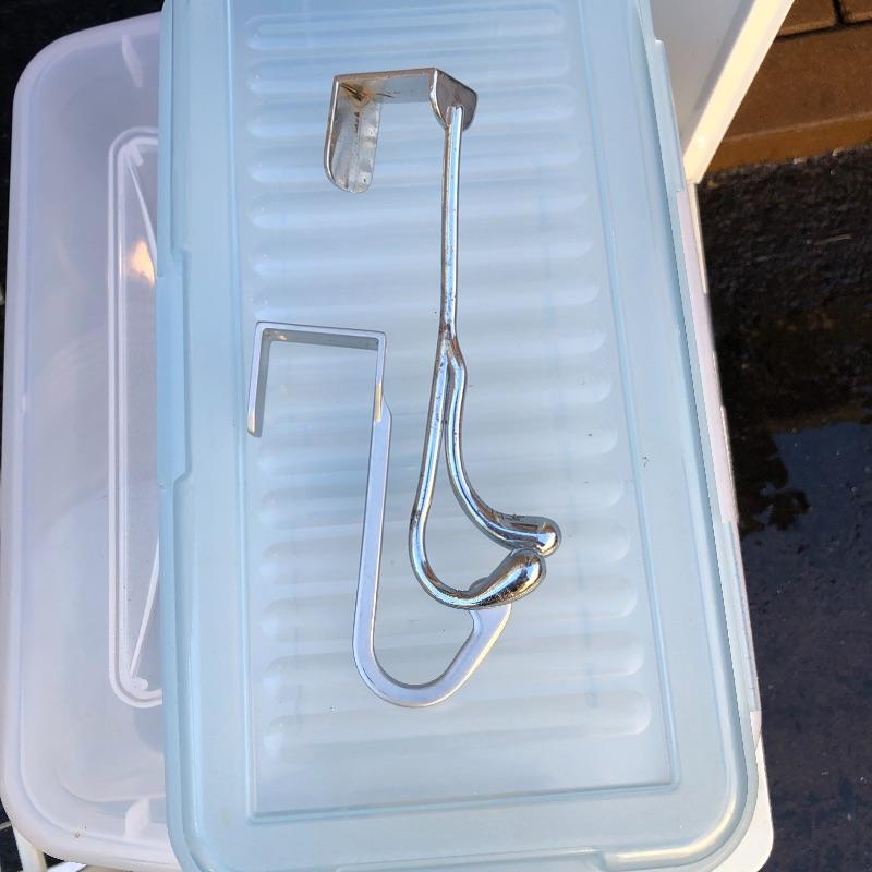 This lot contains miscellaneous storage items, including two identical white metal shelves (23.5” x 13” x 42”), a smaller white metal pull-out shelf (21.5 x 18 x 28”), as well as four small plastic storage bins of varying sizes. Along with the white shelves, this lot comes with three large Rubbermaid bins. Lastly it comes with three small metal storage caddies and about a dozen metal shelf brackets. Local pickup only.