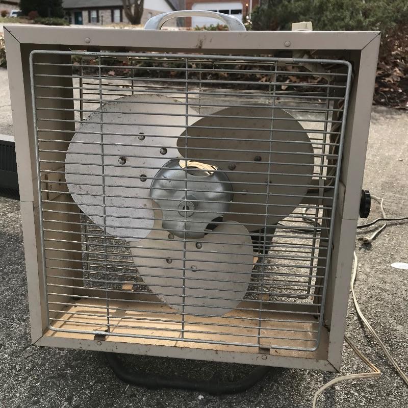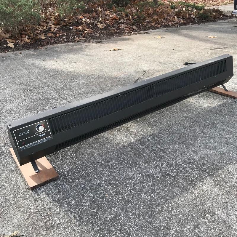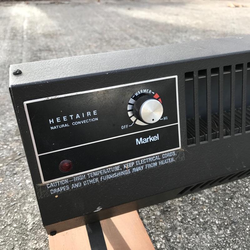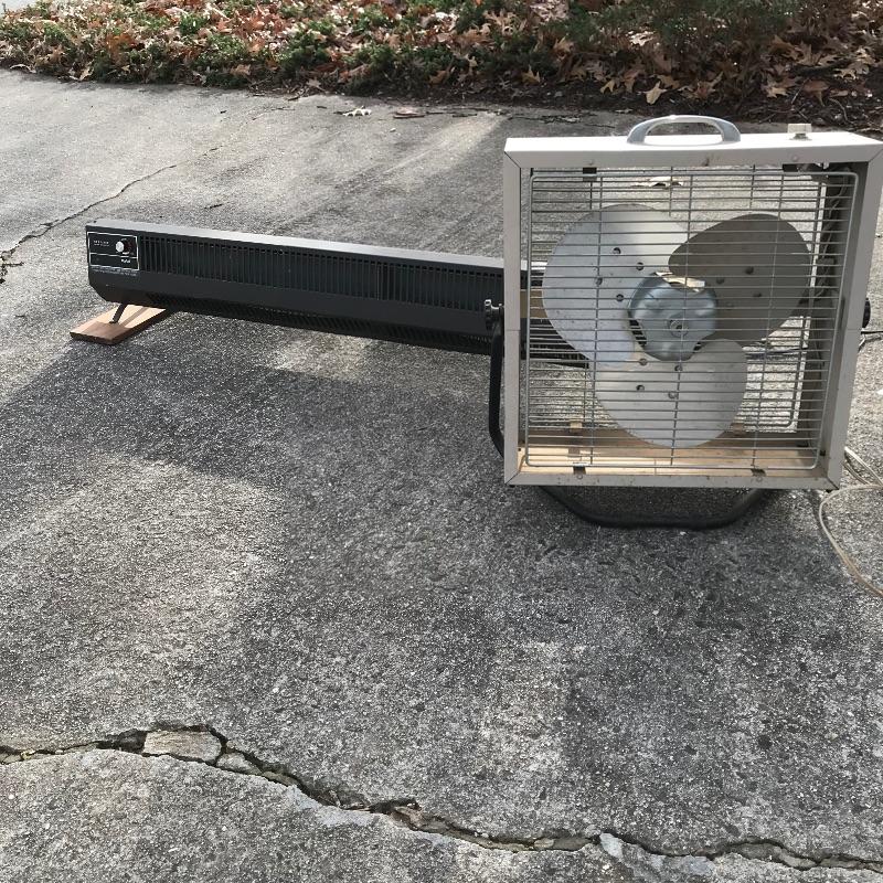 Conveniently timed... two working space heaters. Both appear older, but work great, keeping us warm in a garage on this 35 degree day! A small box heater by Comet Air. The second Heetaire floor heater, currently screwed to two wood boards could be easily mounted to a wall. See photos. No shipping.