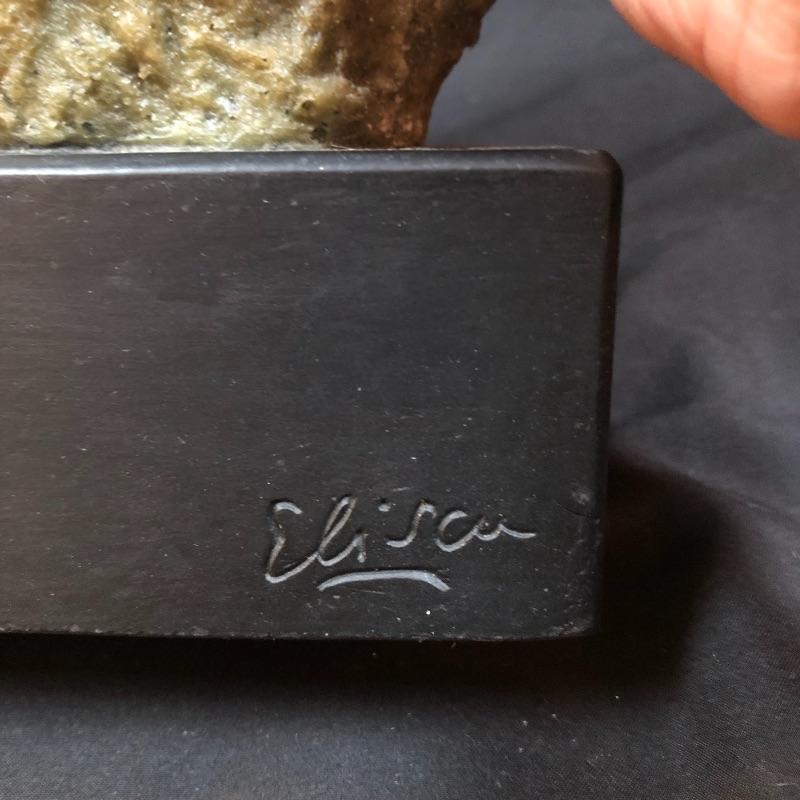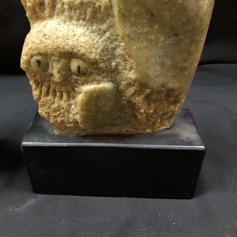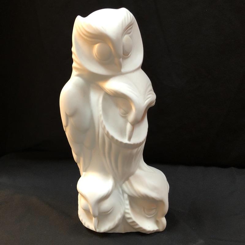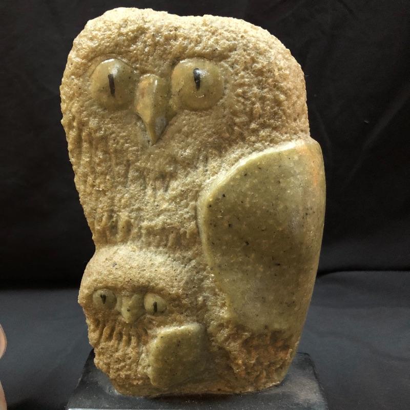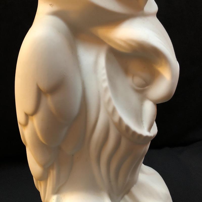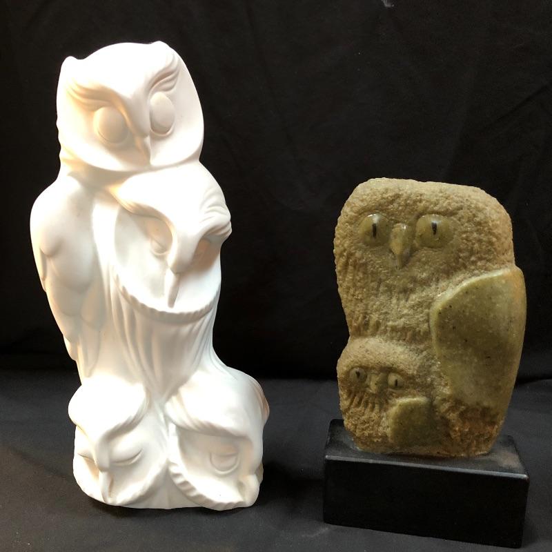 The wise and regal owl has been eloquently captured in both of these very different pieces of art. The vintage Frank Eliscu sculpture is made from green granite mounted atop a black wood base and measures 5.5” x 10.5”. The white Limoges sculpture is an equally striking piece that measures 7” x 13”.