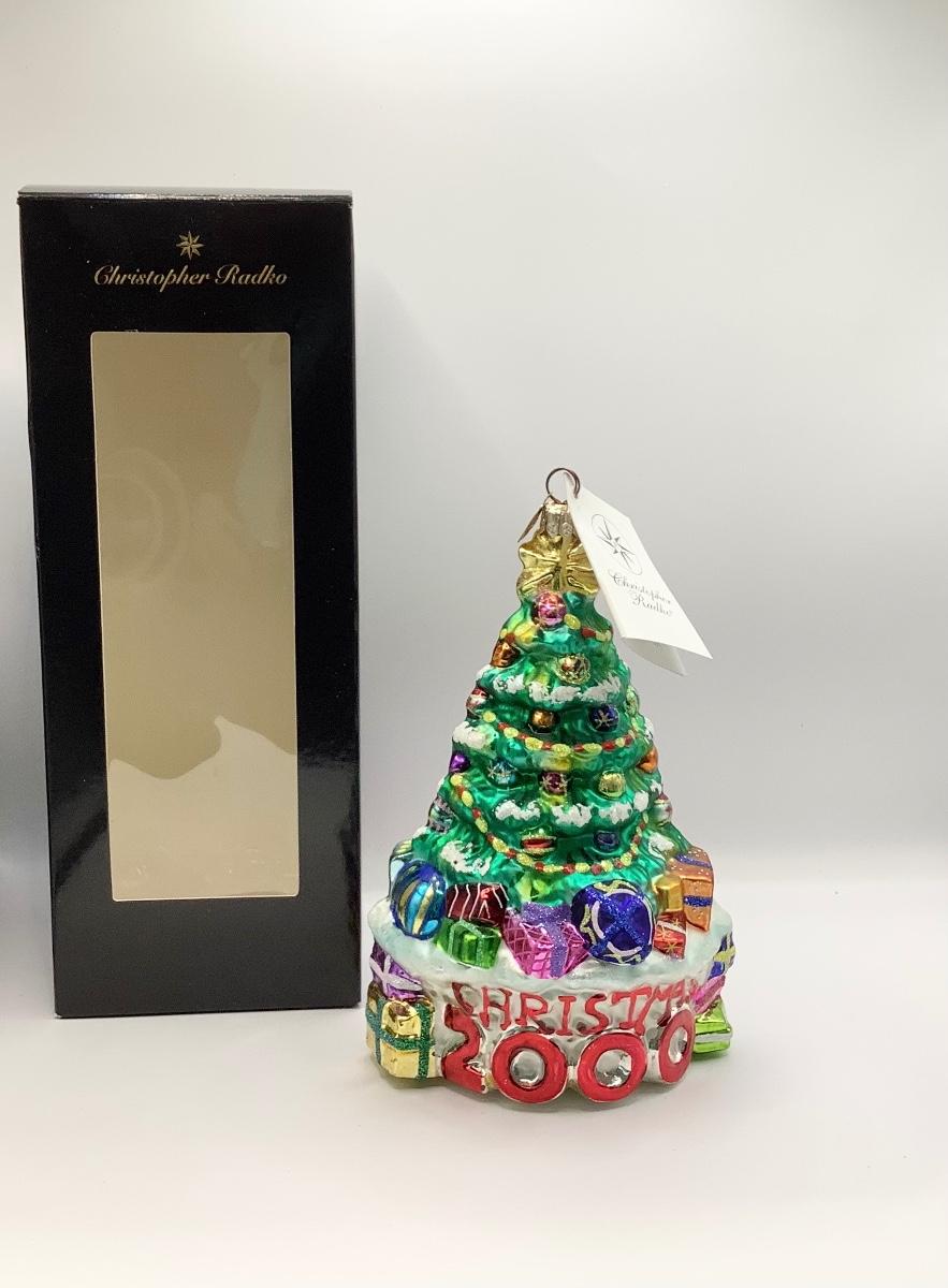 Lot 1323 Christopher Radko 2000 Millenium Christmas Tree Trimmed Glass Ornament