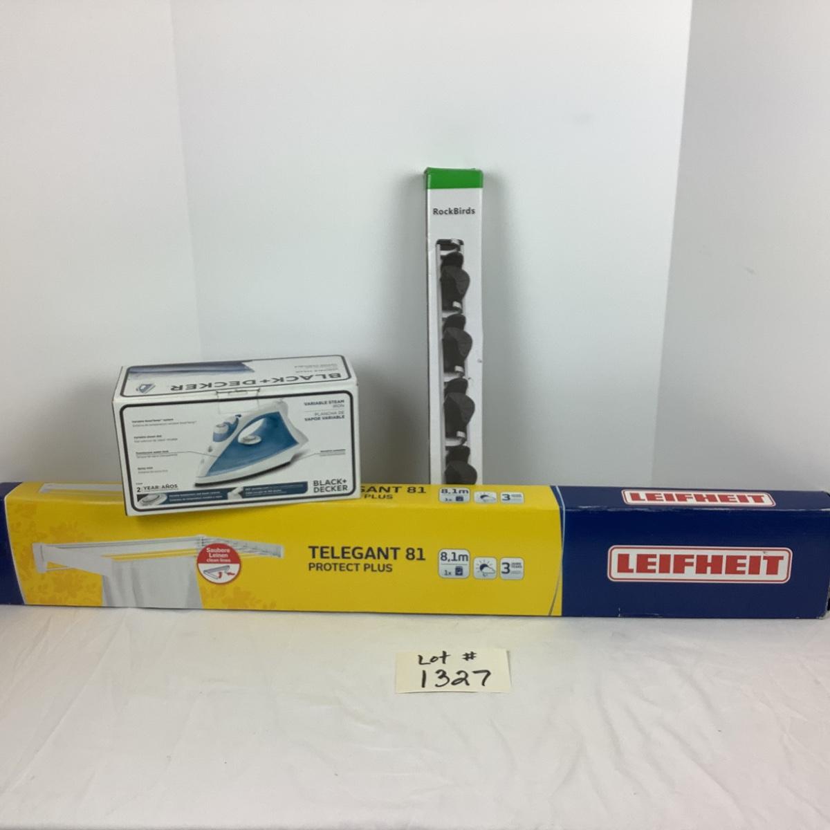 Lot # 1327. Telegant 81 Clothes Drying Rack/ Black&Decker Iron/Pole Clip Hanging Rack