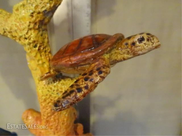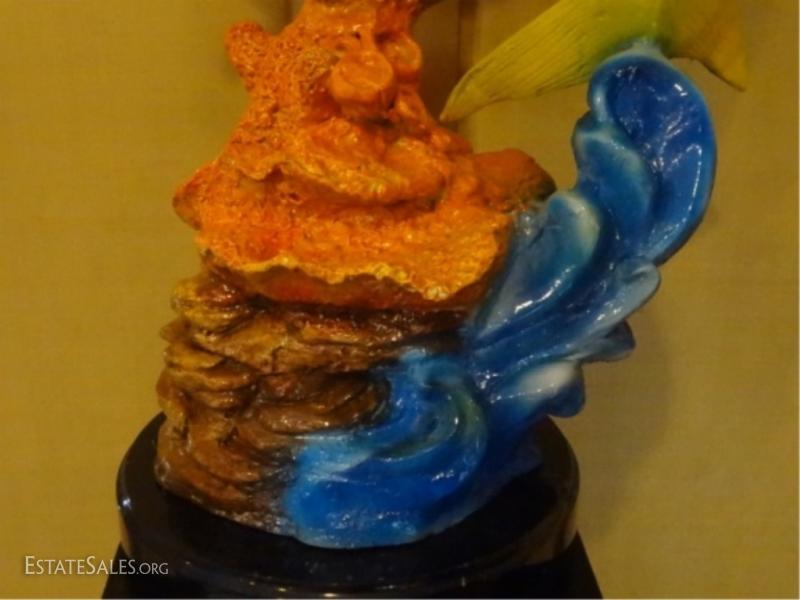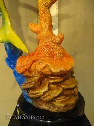 LOT 132B: LARGE PATINATED BRONZE MAHI MAHI SCULPTURE ON MARBLE BASE, NEW IN SHOWROOM CONDITION, 30"H X 15"W X 9"D, SKU006.10 H599