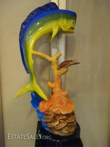 LOT 132B: LARGE PATINATED BRONZE MAHI MAHI SCULPTURE