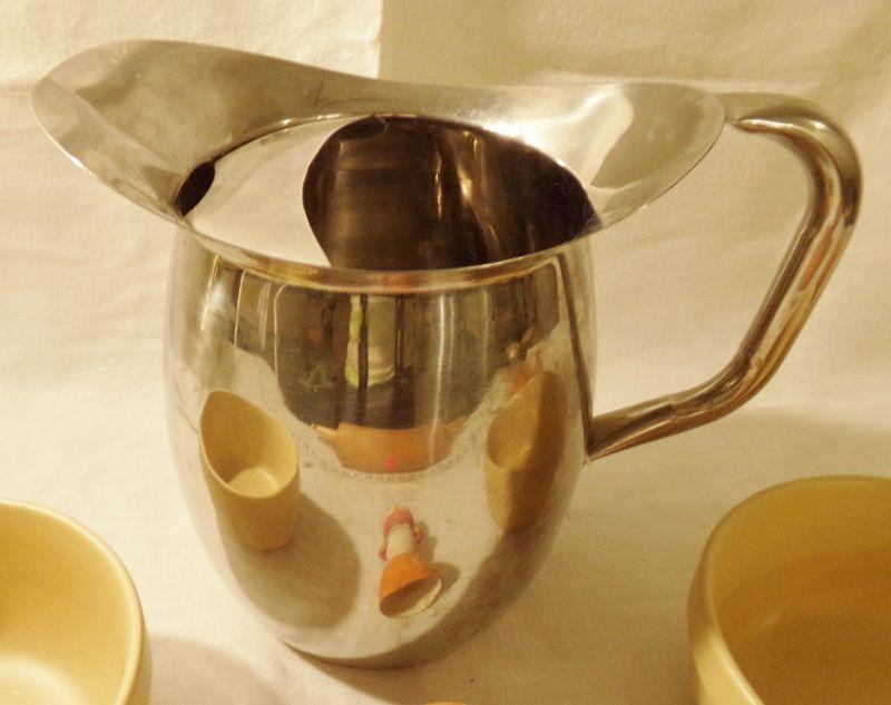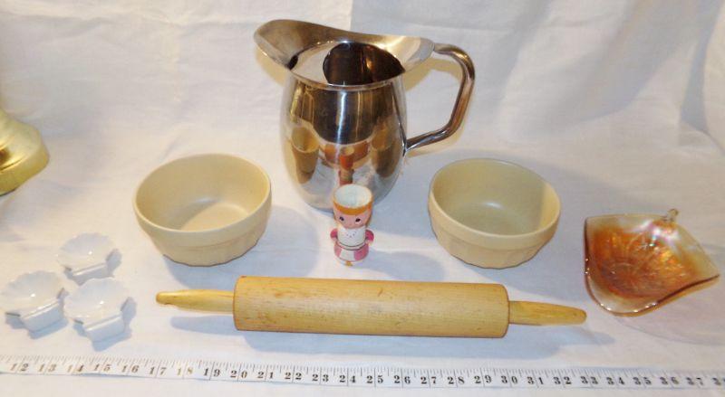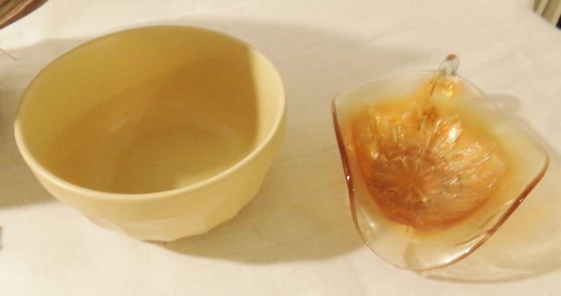 CARNIVAL GLASS, 2 REDWING CLAY BOWLS, STAINLESS STEEL WATER PITCHER AND MORE!