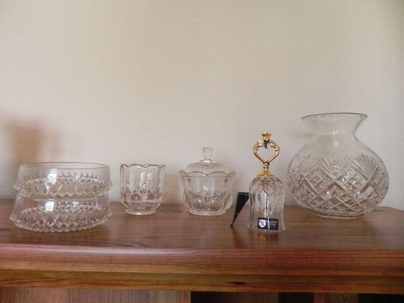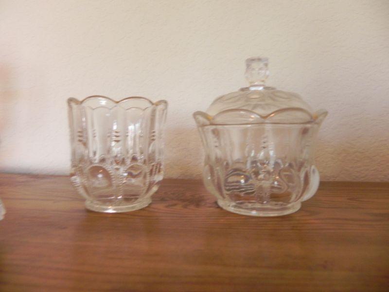 BELL MADE IN ENGLAND, CANDY DISHES, VINTAGE CREAM & SUGAR AND VASE