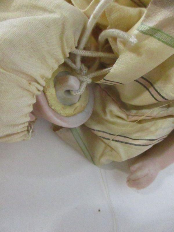 Eyes sleep but head is packed - Tag says Kestner - does have a lot of damage - These dolls are used and preowned