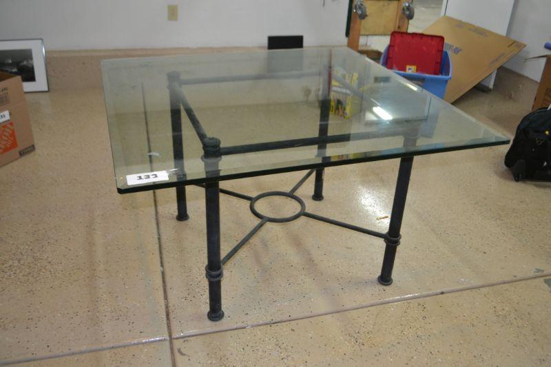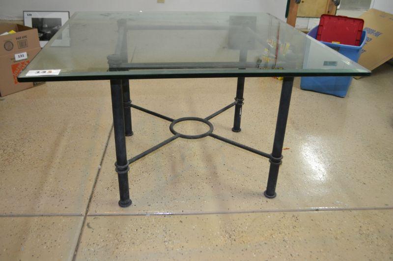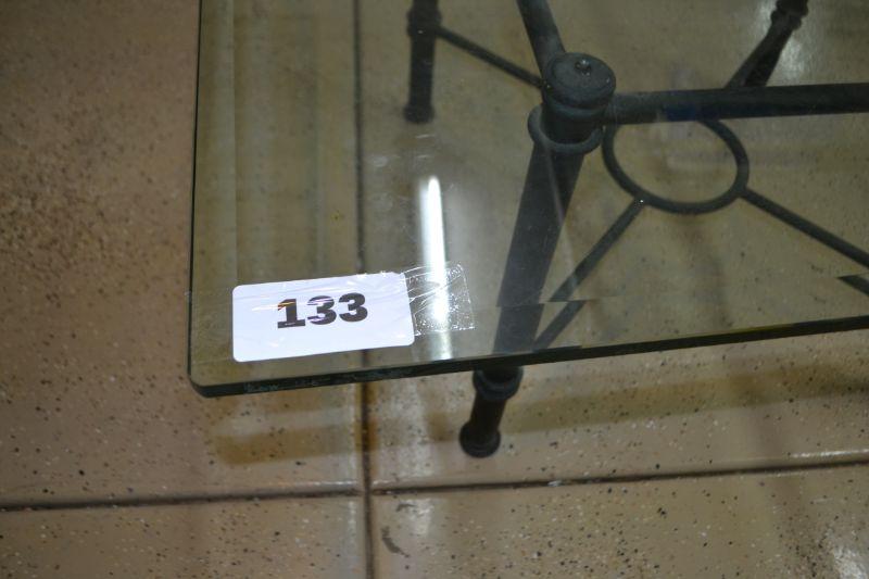 LOT 133 GLASS TABLE WITH METAL BASE