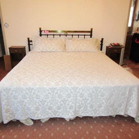 TAN COLORED KING SIZE COMFORTER AND BED SKIRT MADE IN PORTUGAL