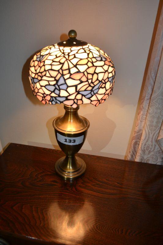 LOT 133 TABLE LAMP WITH FAUX STAINED GLASS SHADE