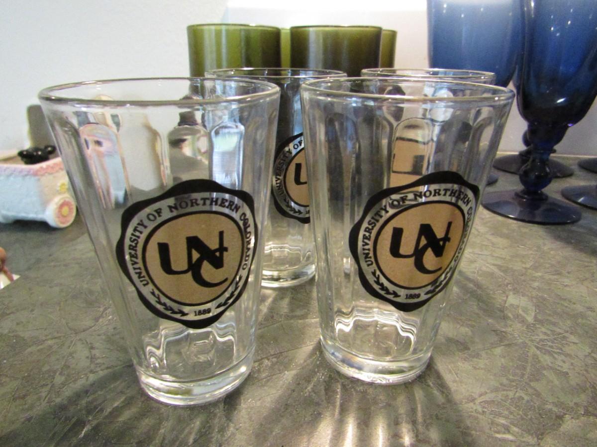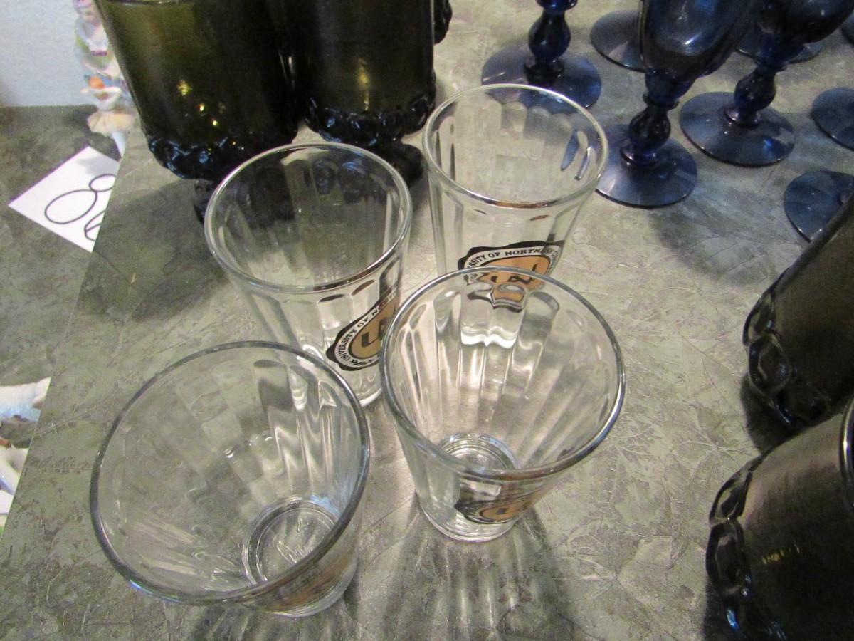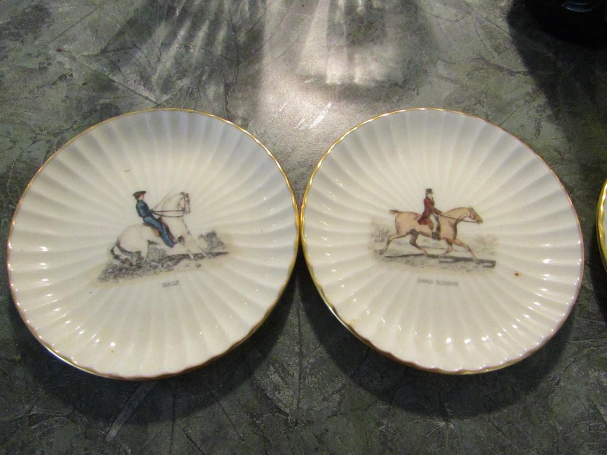 4 UNC GLASSES AND 4 LENOX PLATES WITH HORSE THEME
