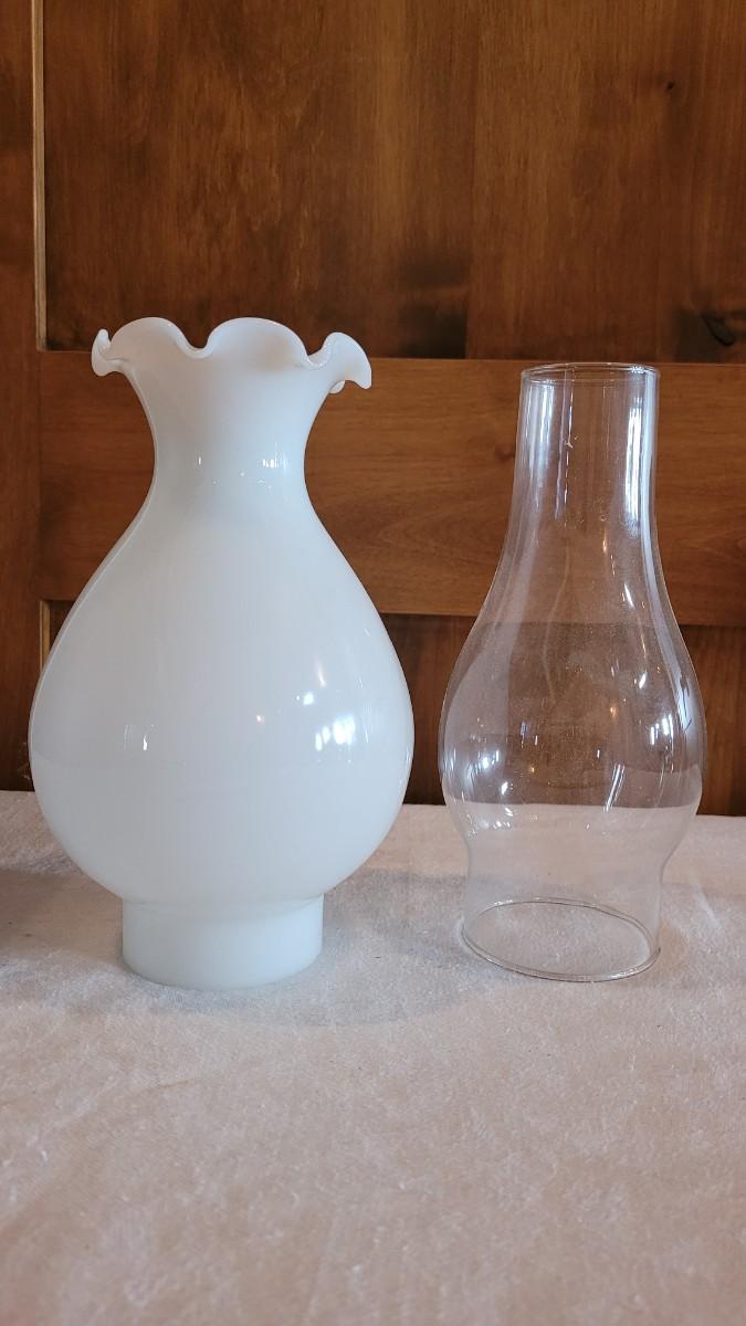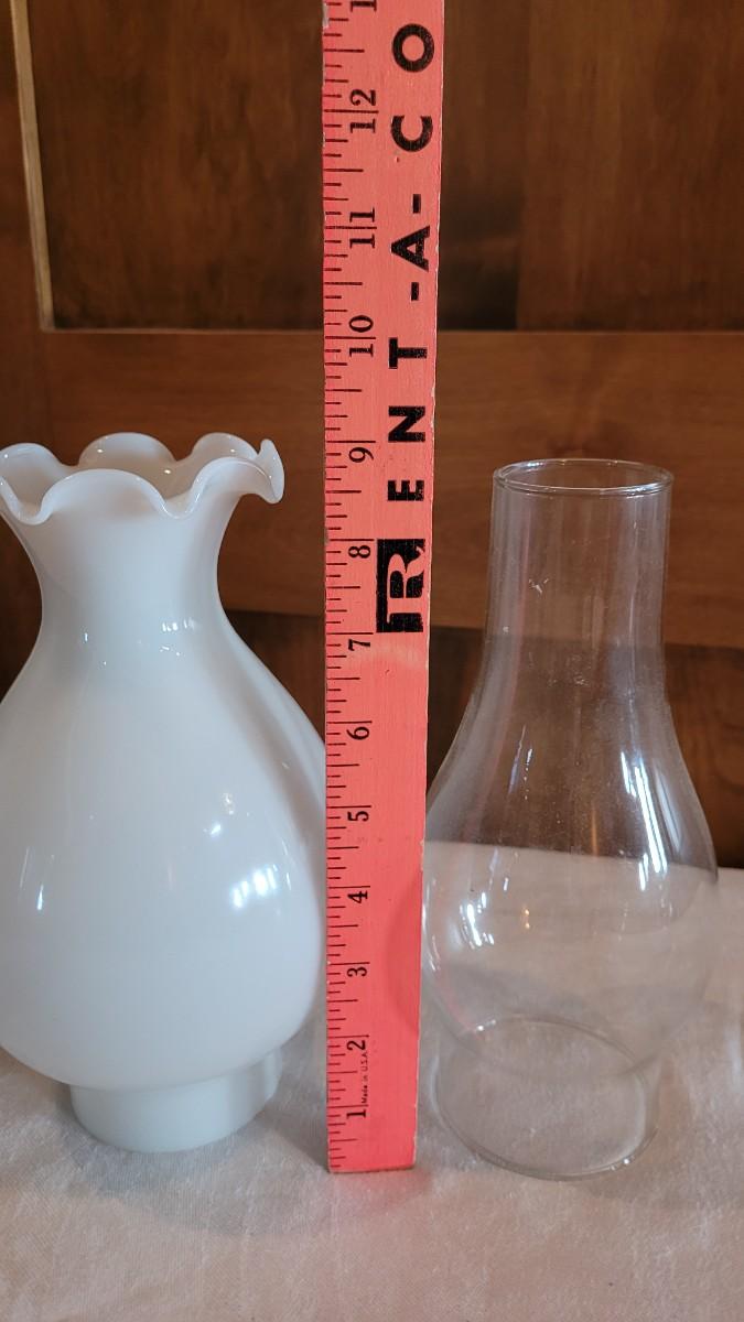 Lot 133: Milk Glass and Glass Glass Chimneys