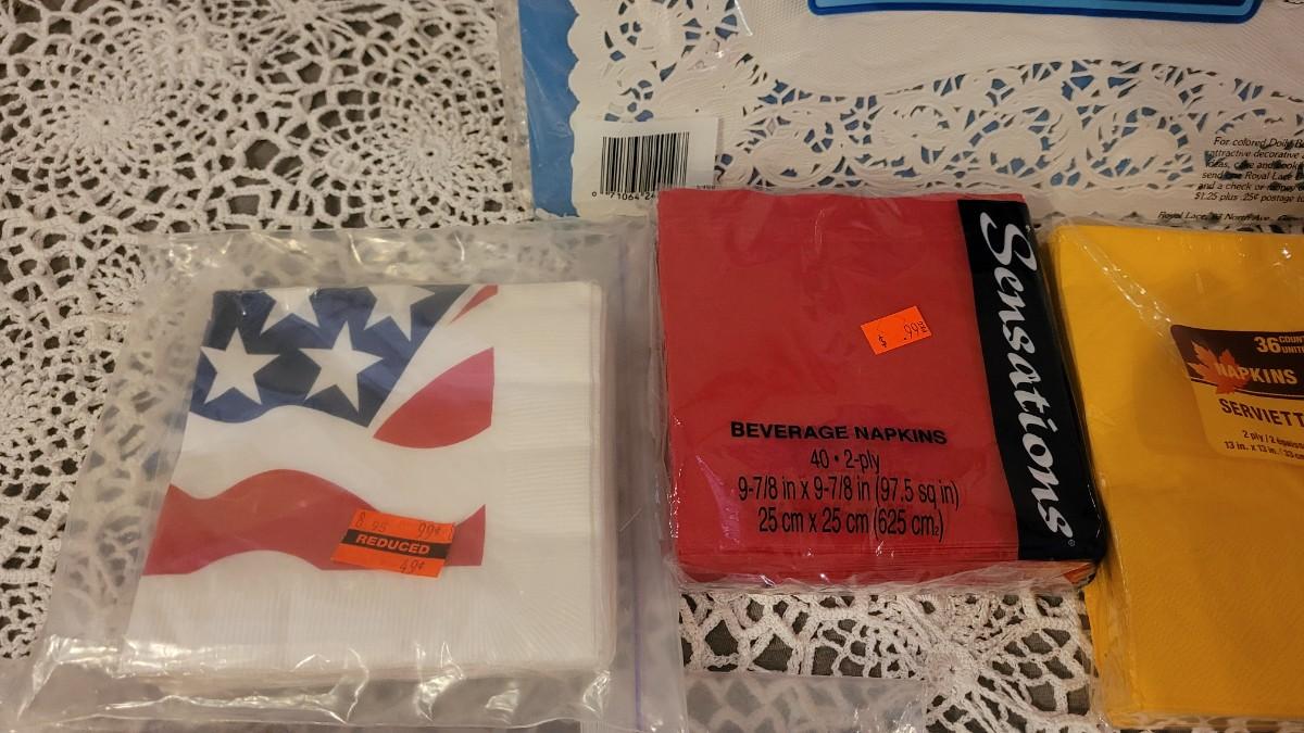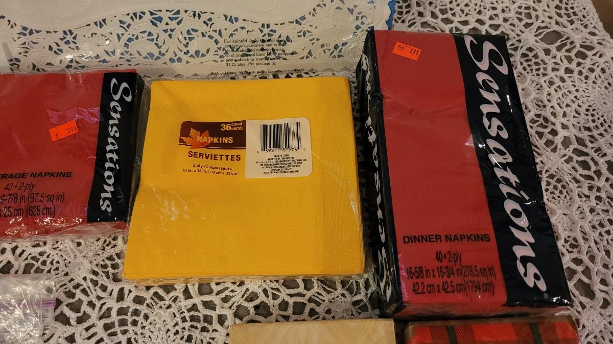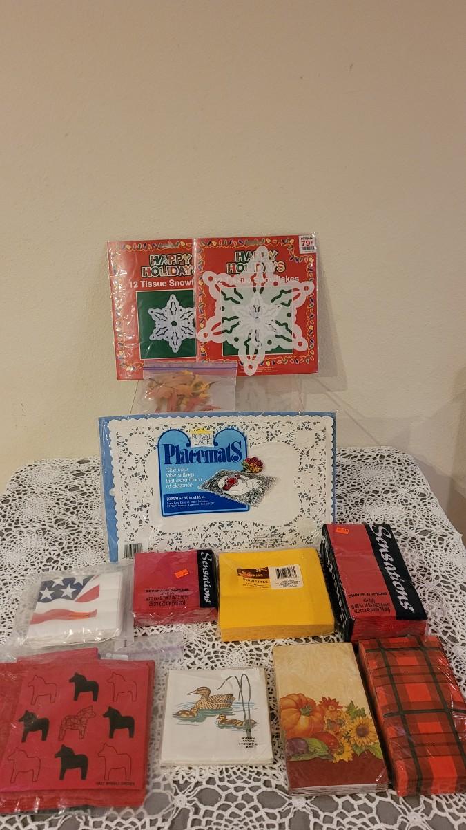 Lot 128: Disposable Napkins, Placemat, Snowflakes and Leaves
