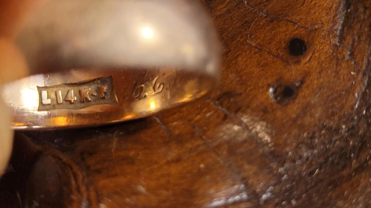 This Vintage 1960's 14k Yellow Gold Wedding Band appears to be a 7.5 and is unpolished. Still in nice condition for age and ready to wear. Does show inscription of initials and date on inside. Appears to be between 2 and 3 grams total.